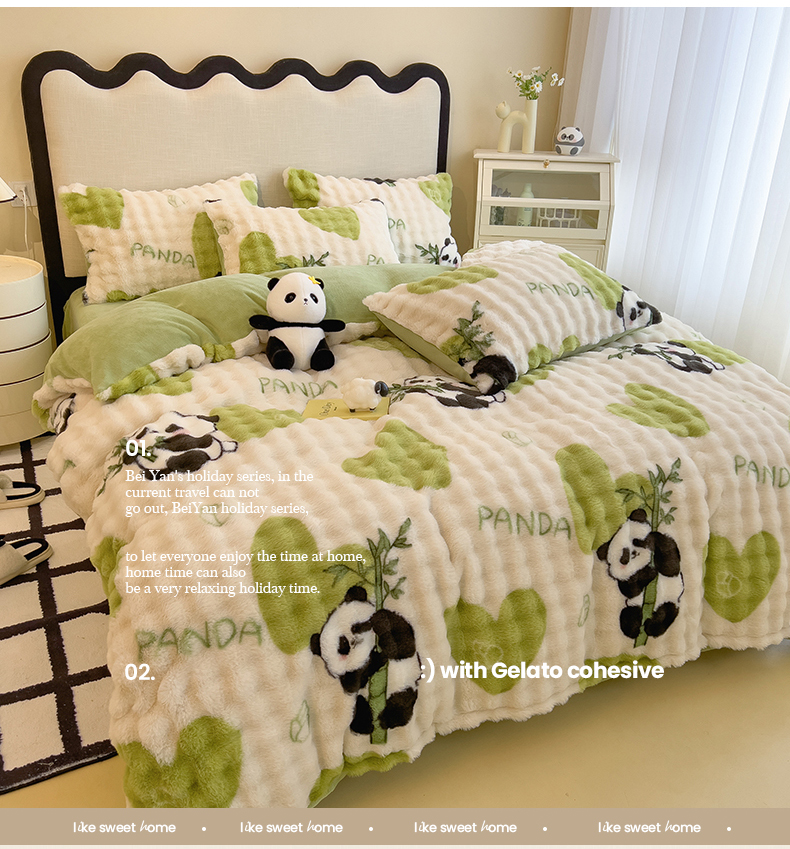 当前位置: 91家纺网 > 商品网购 > 床品套件 > 四件套 > 牛奶绒四件套 > 摩妮卡 2025新款A类大泡泡印花兔毛牛奶绒四件套 熊猫萌萌