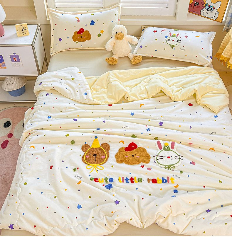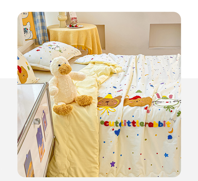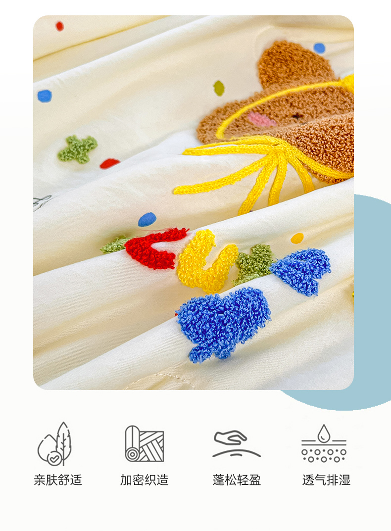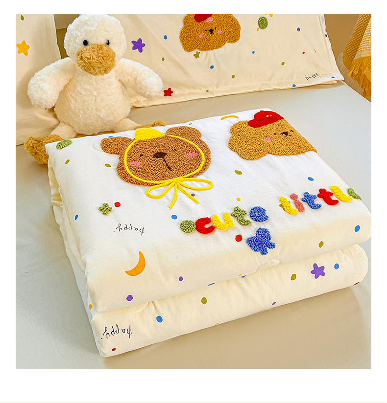 商品名称:梵克保罗 2025新款亲肤可爱毛巾绣夏被-场景一 复古小熊