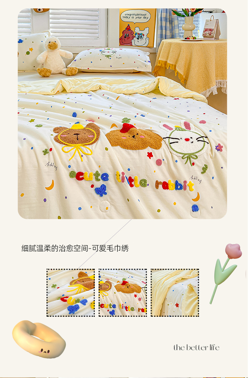 梵克保罗 2025新款亲肤可爱毛巾绣夏被-场景一 复古小熊