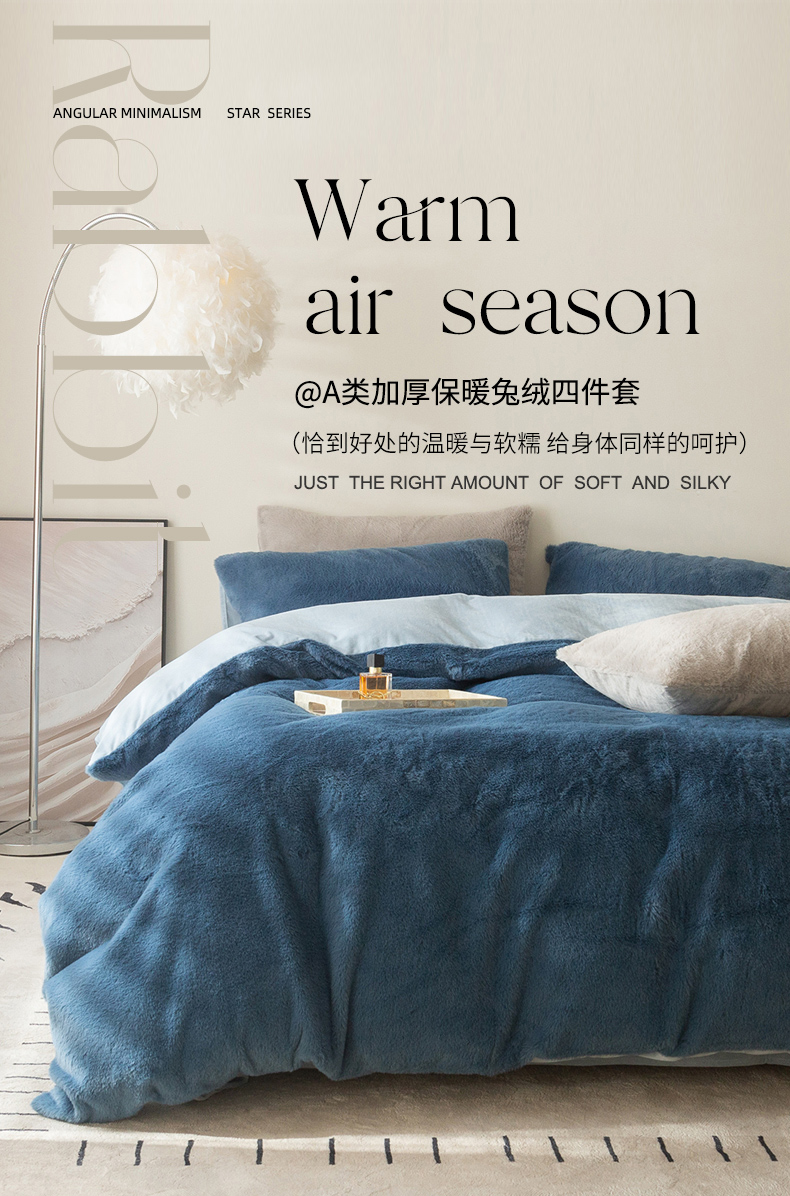 当前位置: 91家纺网 > 商品网购 > 床品套件 > 四件套 > 其它四件套 > ONE TWO ONE 121 2025新款A类加厚兔毛绒纯色四件套-安娜 安娜-暖蓝