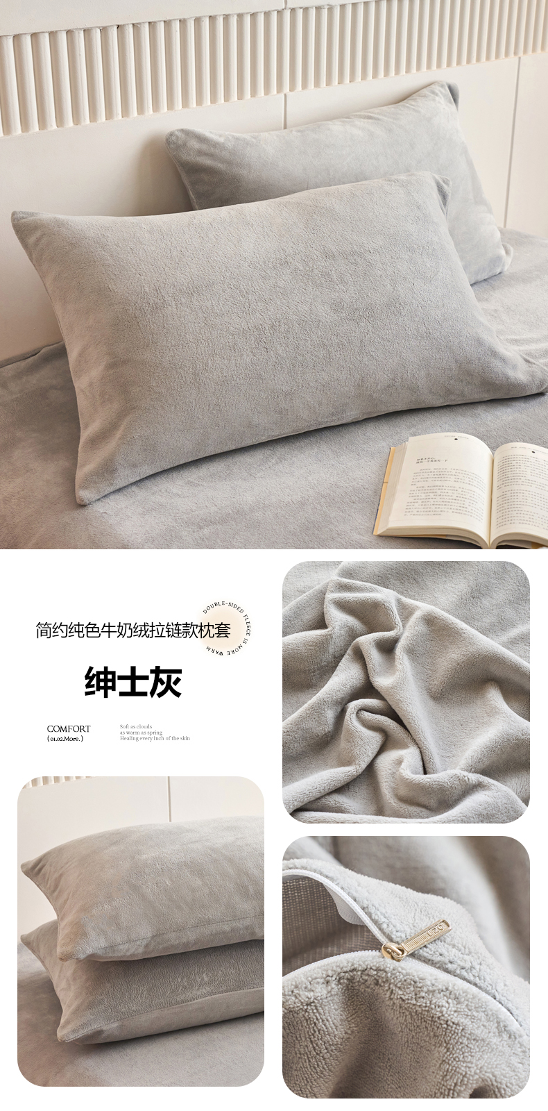 商品名称:兰紫橙家纺 2025新款简约纯色牛奶绒拉链款枕套 绅士灰