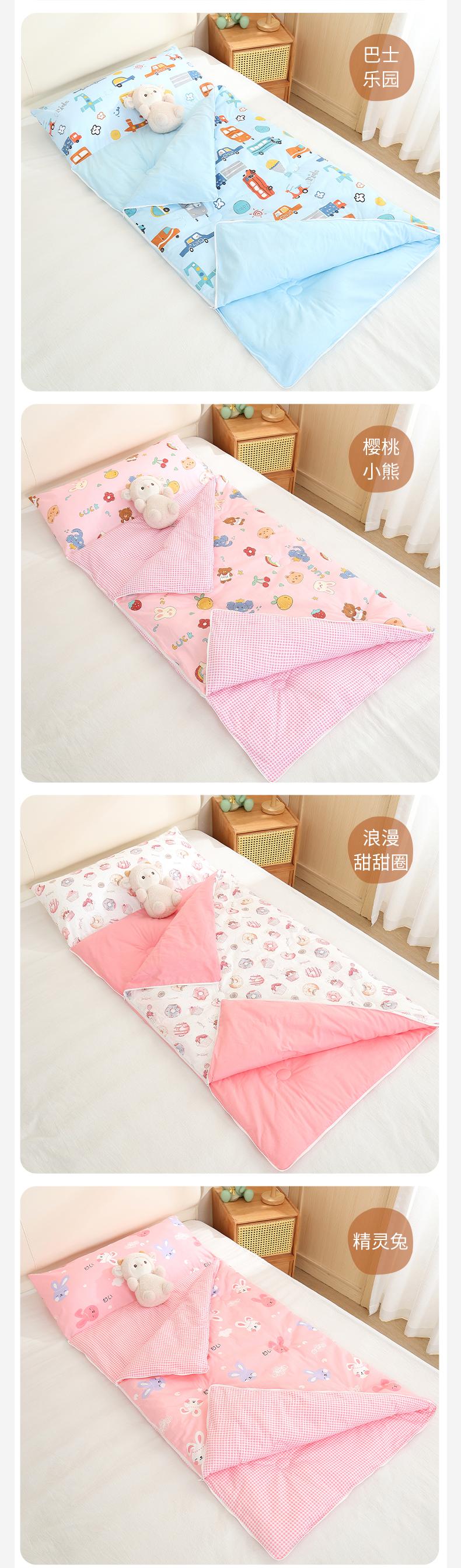 (总)麦吻儿童家居 2025新款全棉40支大版花型儿童被午休睡袋,熊猫荡秋千,刺猬兔子,环球记,热气球与棕熊,雪山精灵