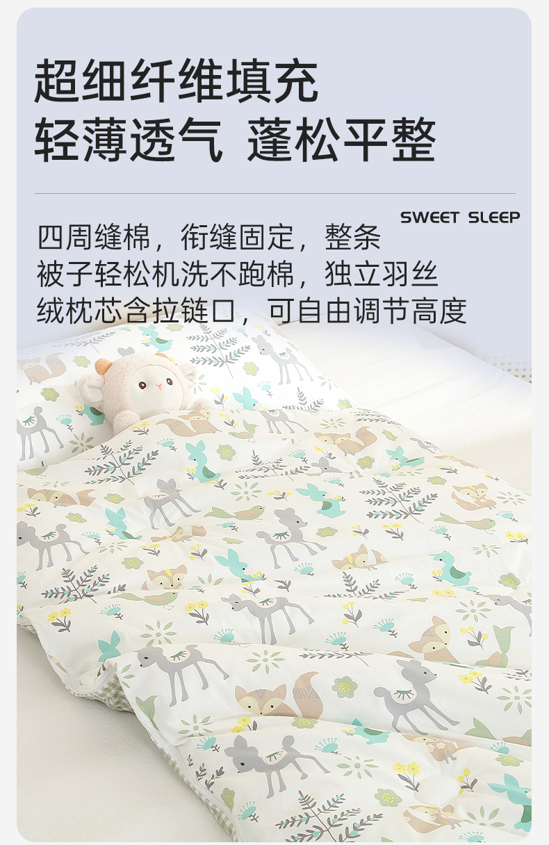 (总)麦吻儿童家居 2025新款全棉40支大版花型儿童被午休睡袋,熊猫荡秋千,刺猬兔子,环球记,热气球与棕熊,雪山精灵