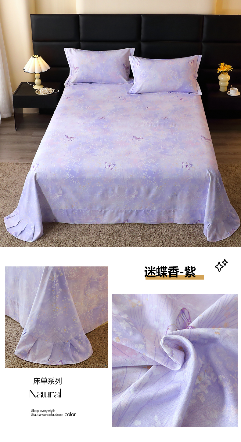 馨雅家纺 2025新款全棉磨毛数码印花单品床单 迷蝶香-紫