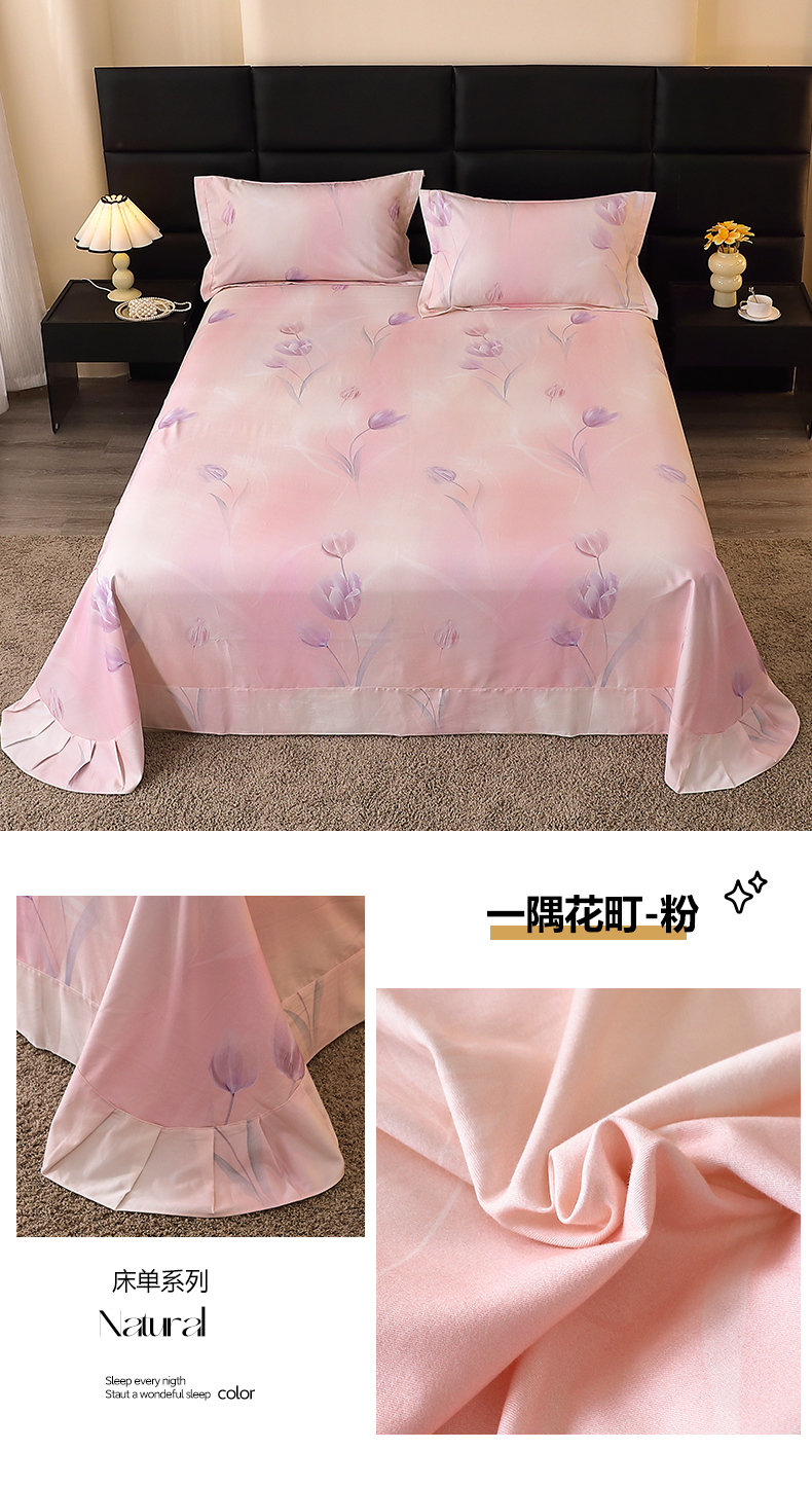 商品名称:馨雅家纺 2025新款全棉磨毛数码印花单品床单 一隅花町-粉