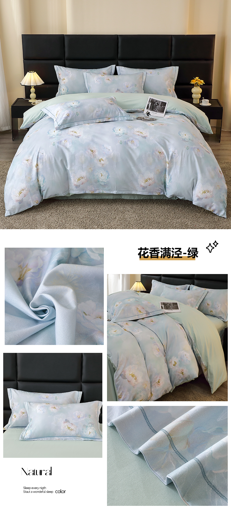 商品名称:馨雅家纺 2025新款全棉磨毛数码印花四件套 花香满泾-绿