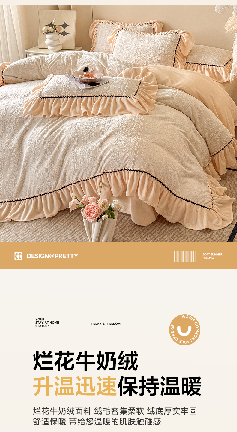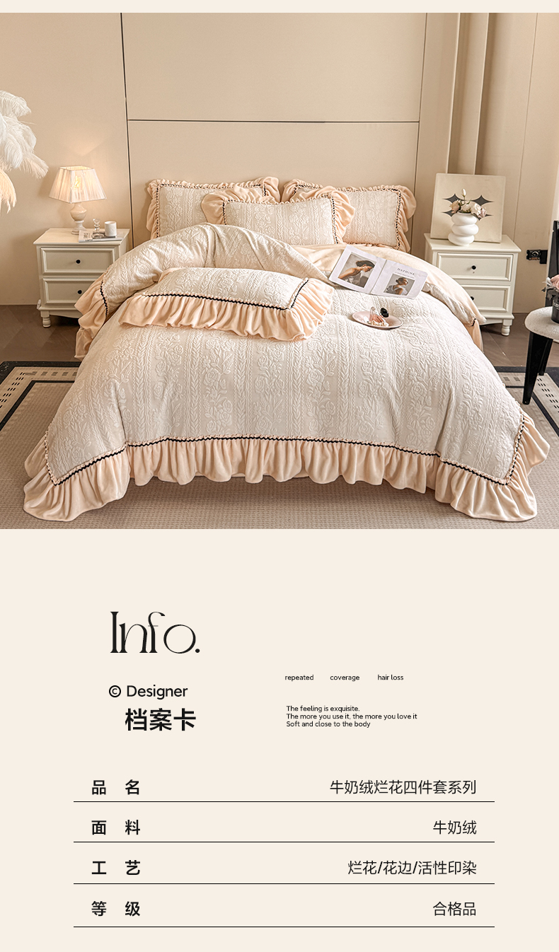 (总)民新家纺 2025新款牛奶绒烂花花边款四件套,臻爱花园 -米黄,蝶恋花 -暖粉,蝶恋花-咖,蝶恋花-蓝,蝶恋花-羊绒灰,叠影-浅灰,叠影-浅绿,马到成功 -浅米咖,马到成功 -浅米绿,马到成功-浅米灰,臻爱花园 -浅粉,臻爱花园 -浅灰,臻爱花园-浅绿,臻爱花园-浅紫