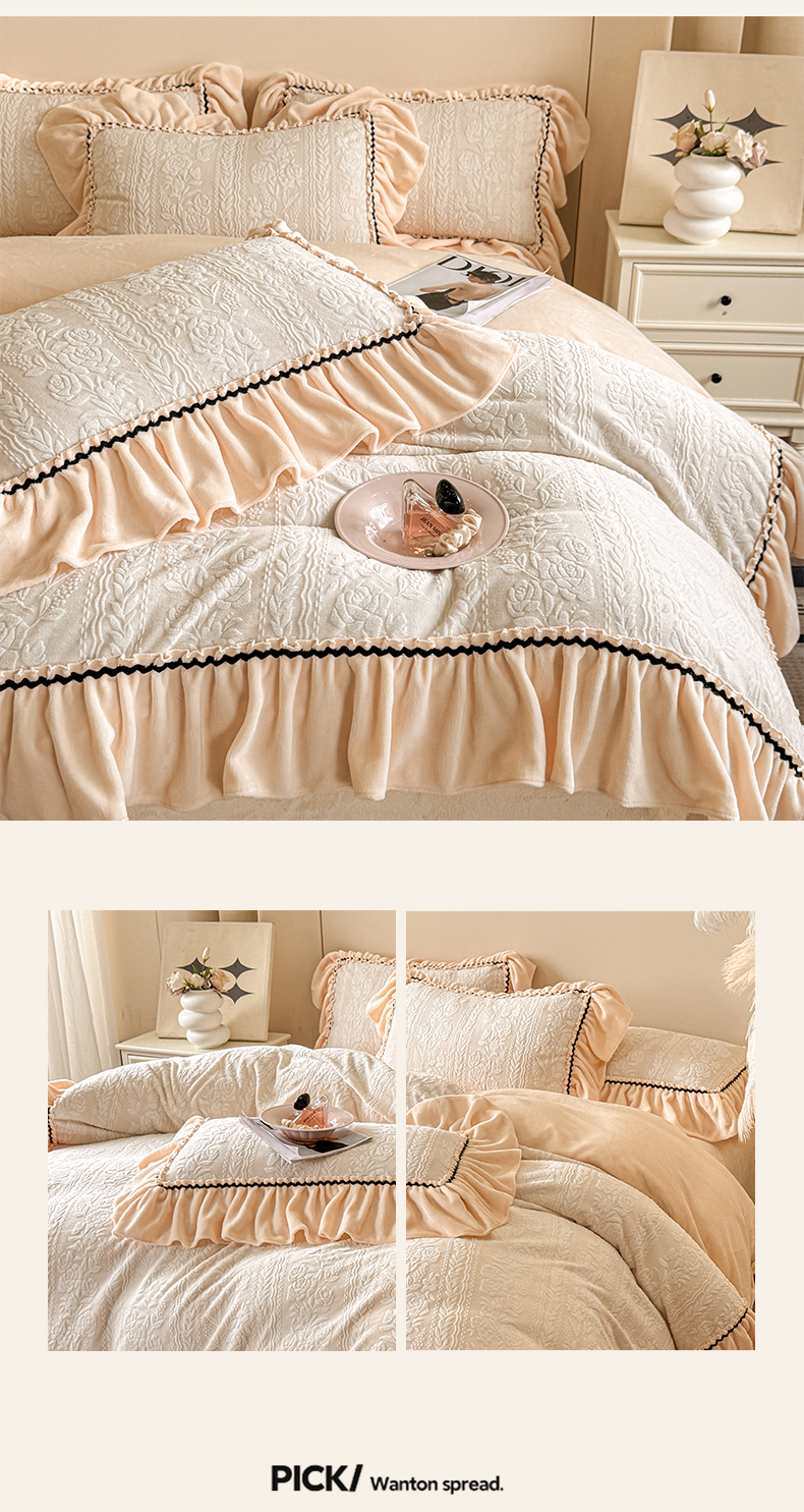 (总)民新家纺 2025新款牛奶绒花边床裙四件套,浪漫时光-浅粉,浪漫时光-大红,浪漫时光-灰,浪漫时光-浅蓝,浪漫时光-浅绿,浪漫时光-浅米黄,浪漫时光-浅紫