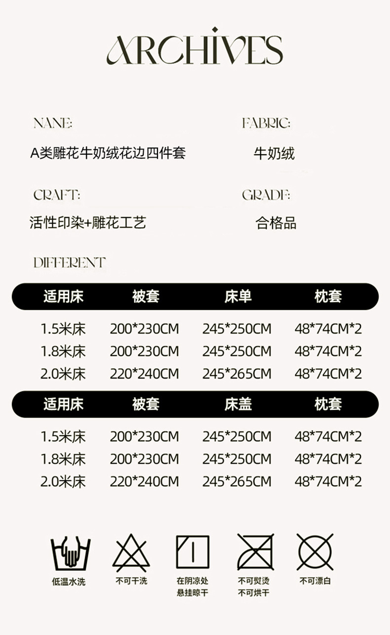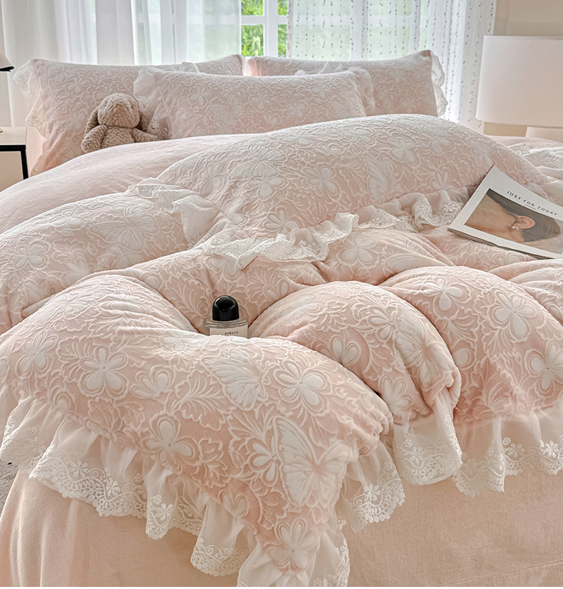 (总)锦格家纺 2025新款A类高克重雕花牛奶绒花边四件套,梦幻-玉粉,初薇-豆沙,初薇-绿,初薇-玉粉,幻梦-黄,幻梦-天蓝,蝶漫-奶白,蝶漫-天蓝
