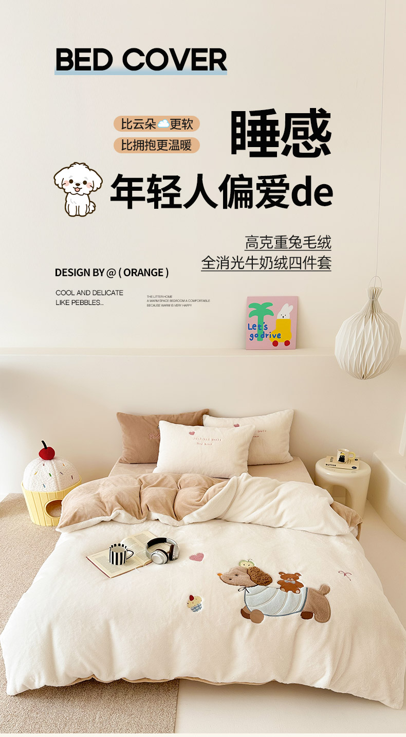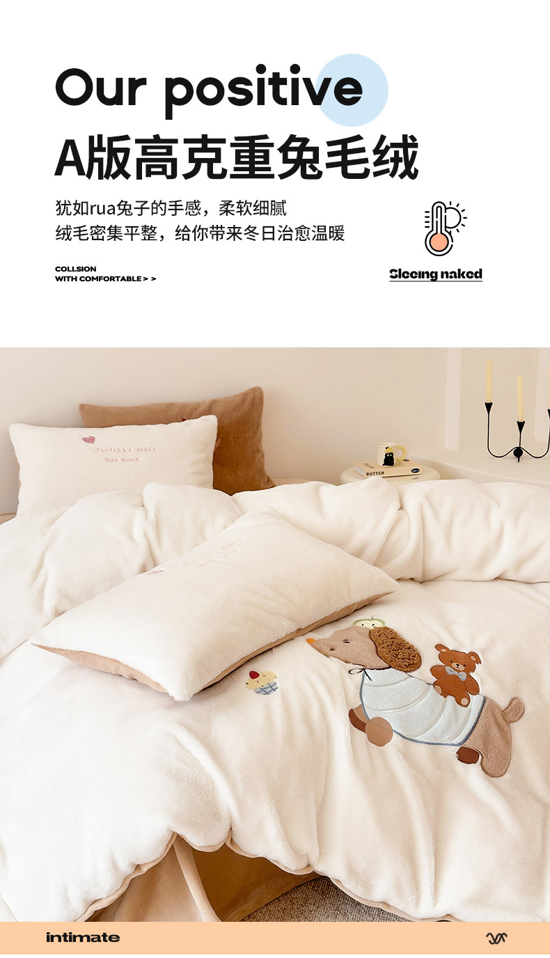 当前位置: 91家纺网 > 商品网购 > 床品套件 > 四件套 > 兔毛绒四件套 > 乐坊 2025新款300g高克重兔绒卡通贴布绣牛奶绒四件套冬季加厚保暖 熊熊腊肠狗