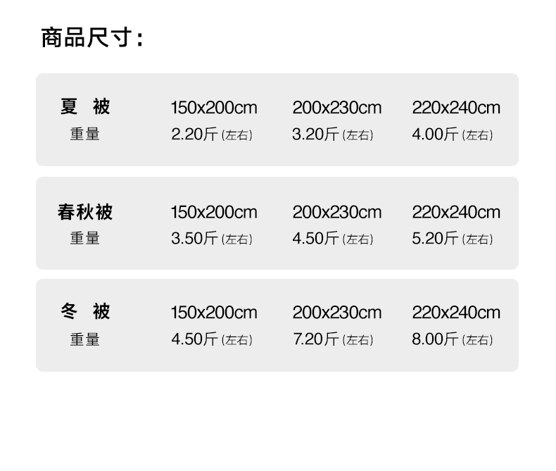 150x200cm 春秋被3.5斤 | ¥260.00 |