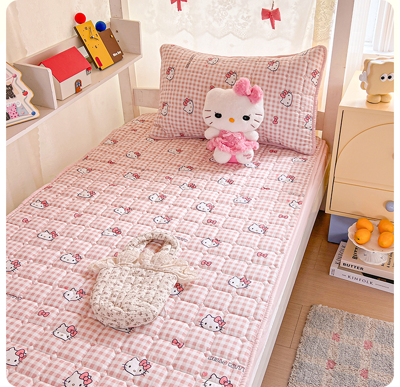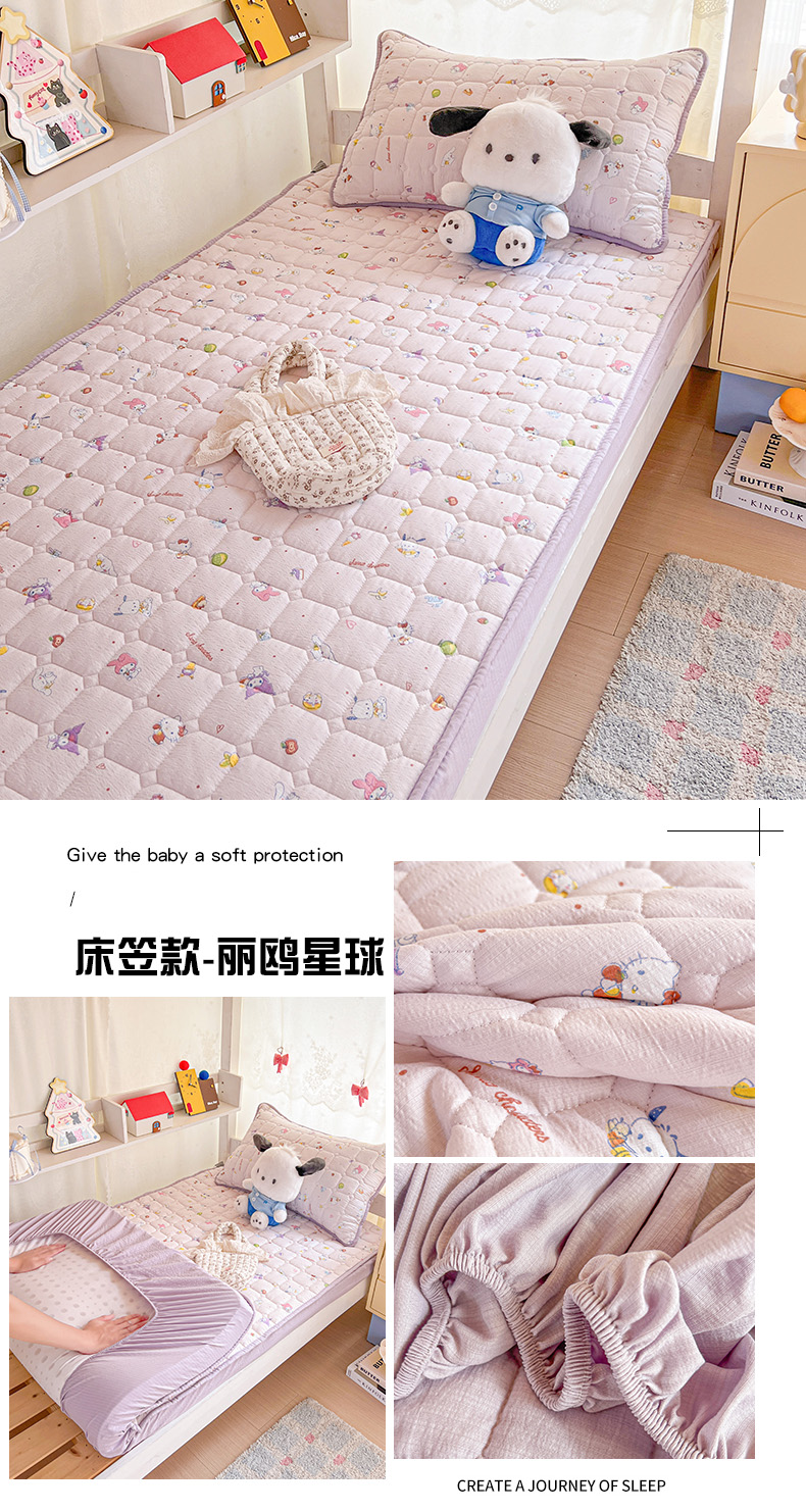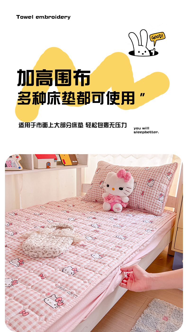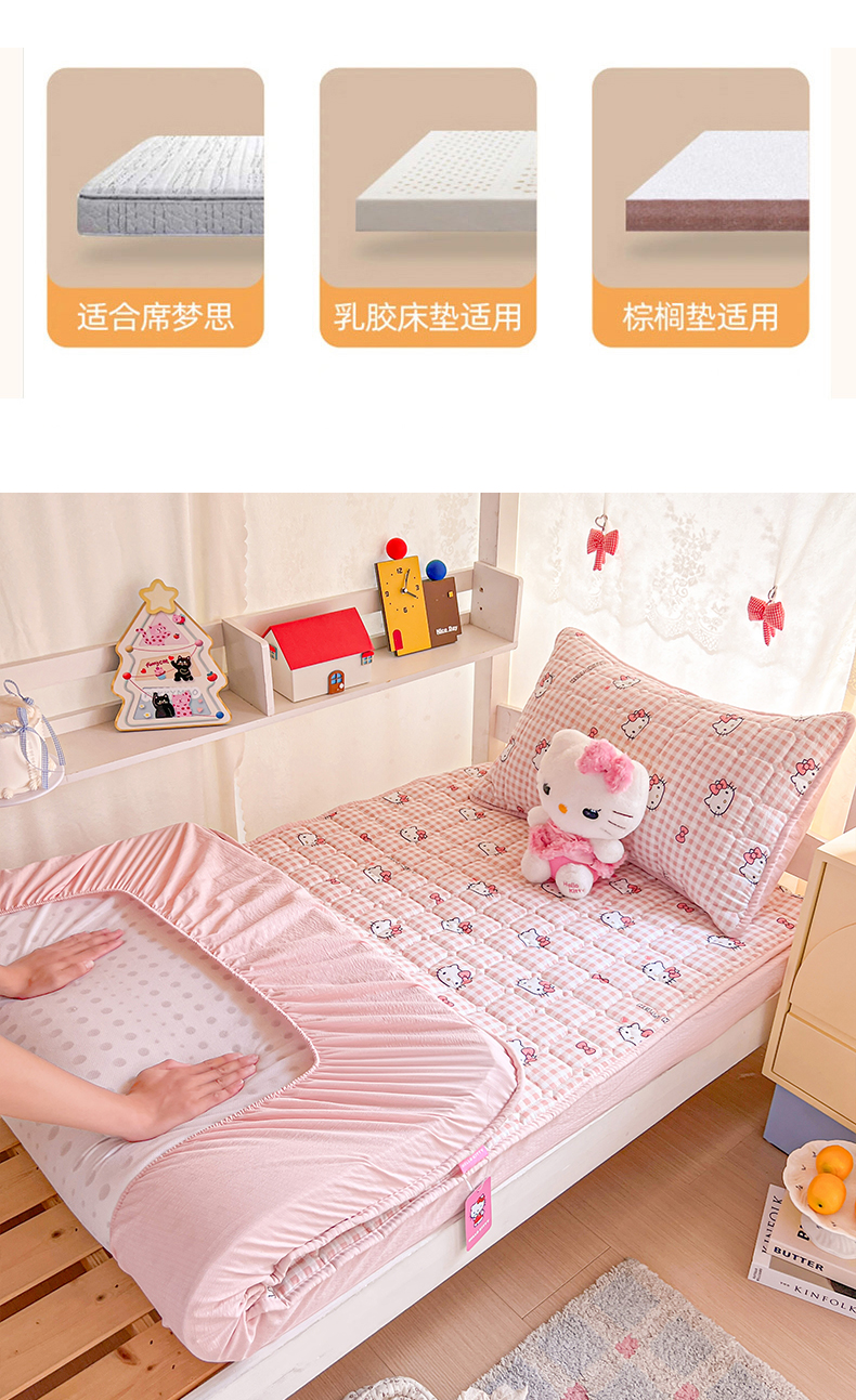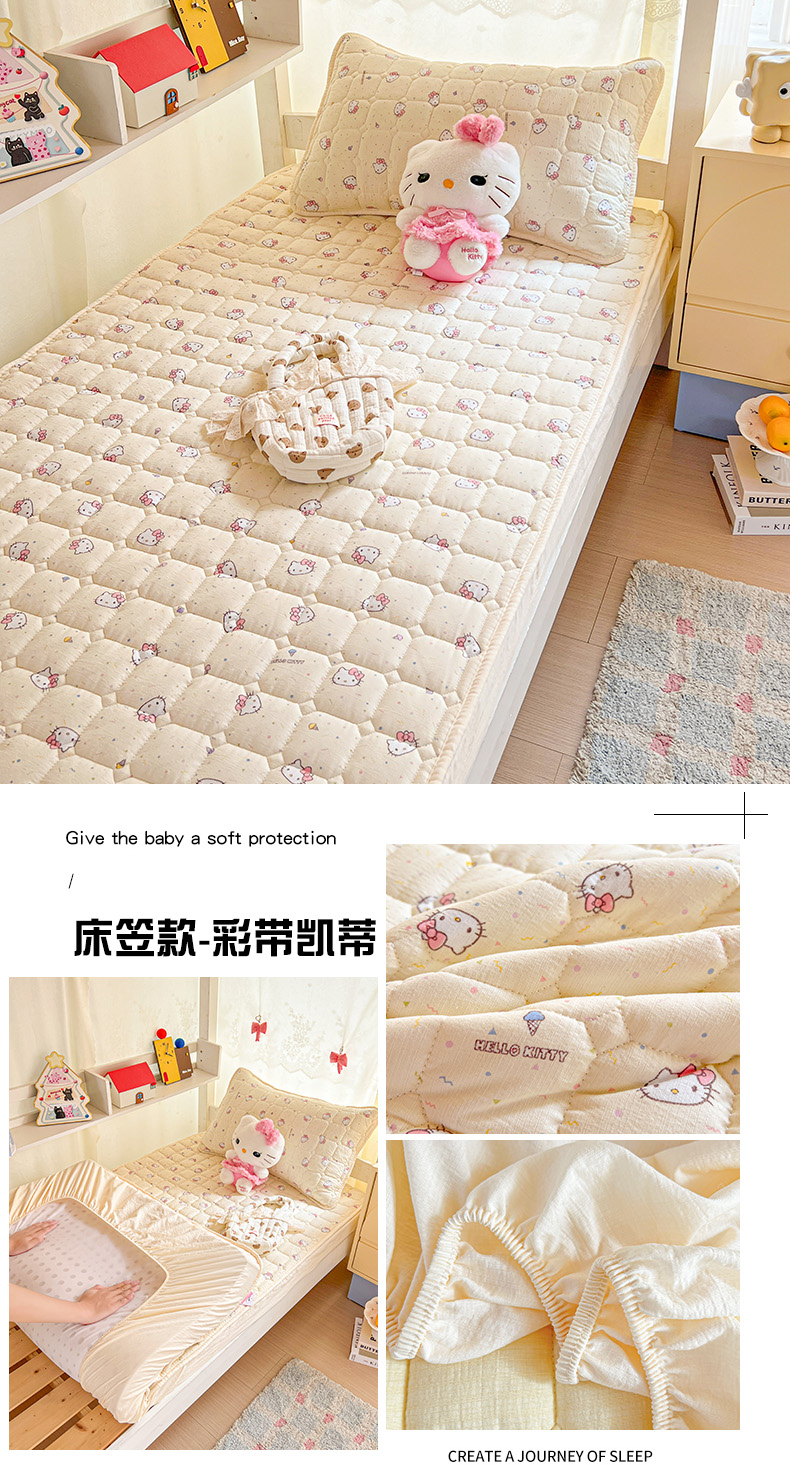 商品名称:星禾优选 2025新款三丽鸥云感双层纱夹棉床笠系列 床笠款-胡须粉kt