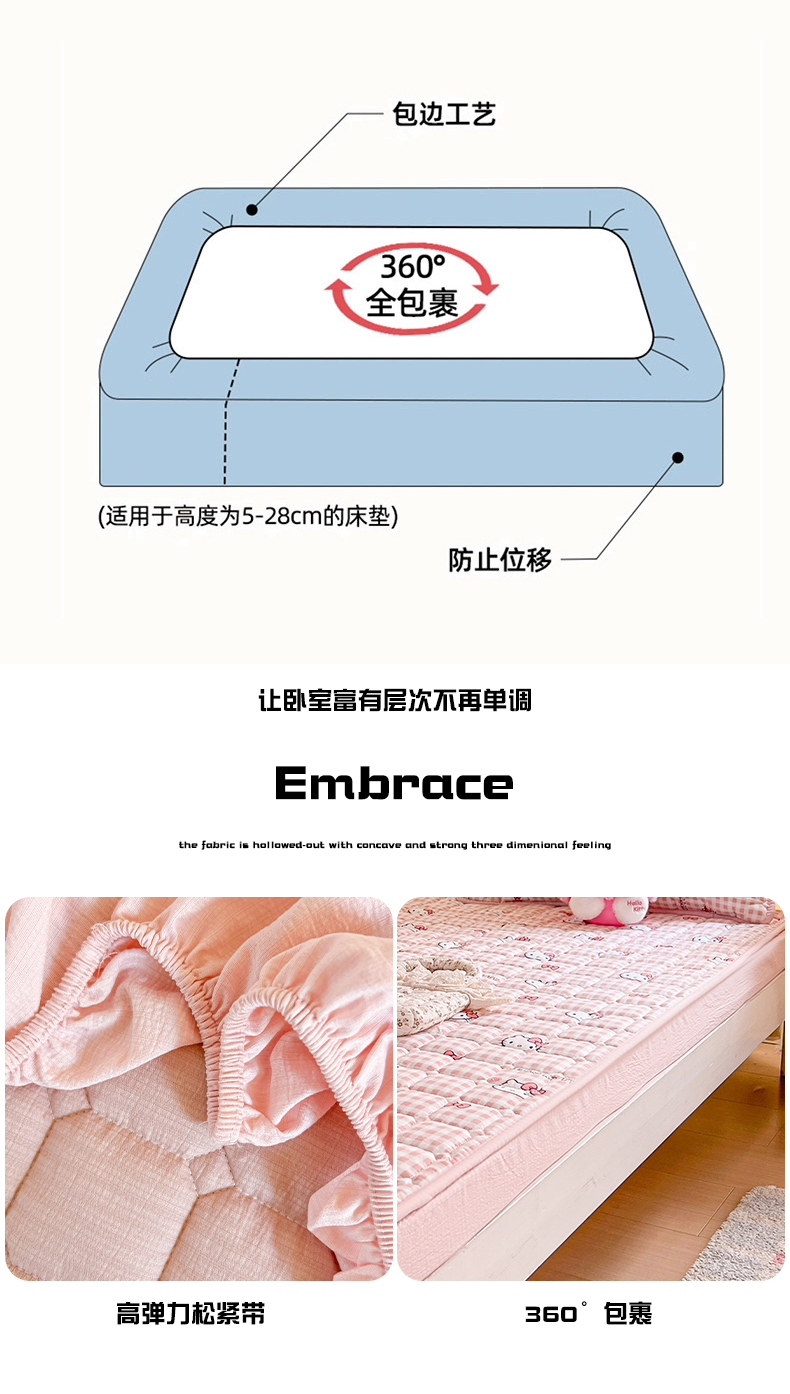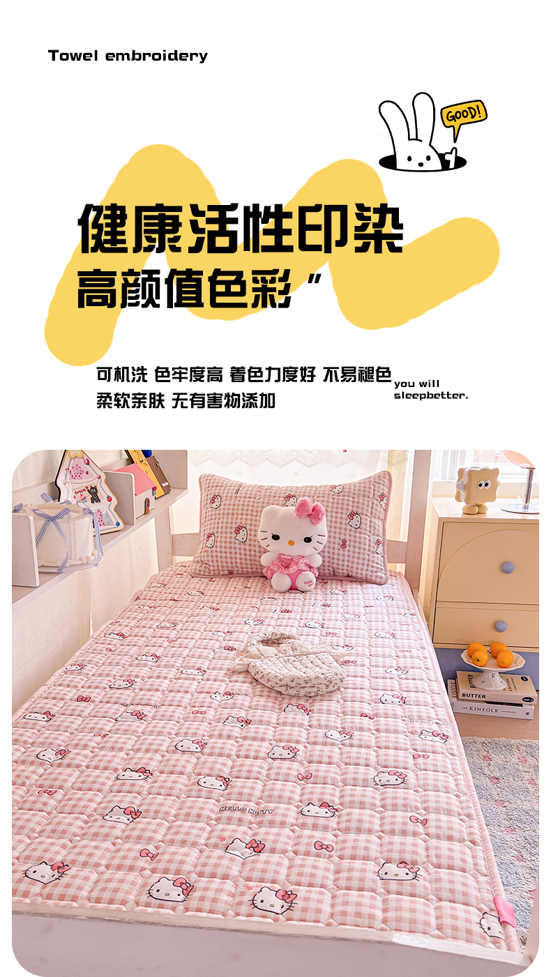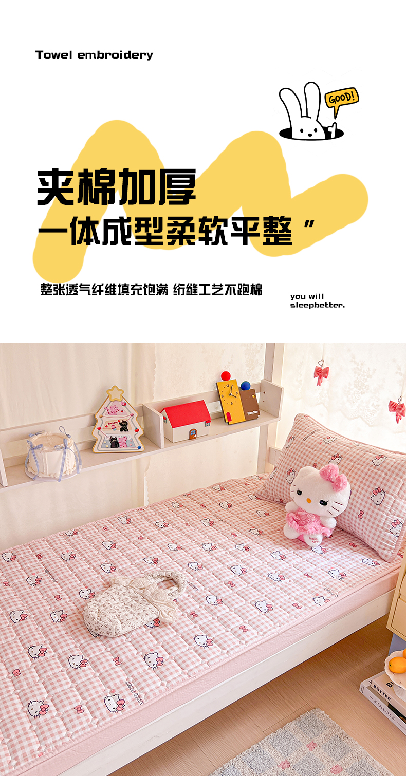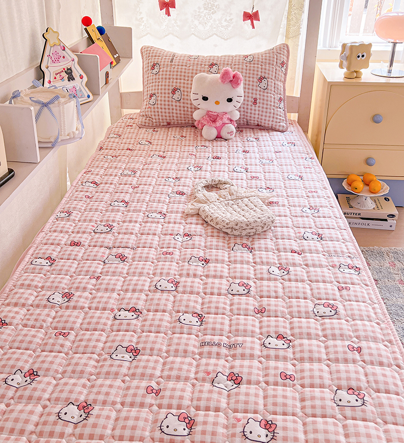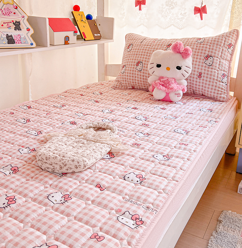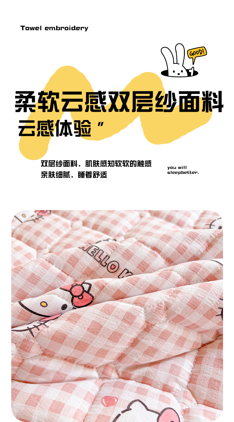 商品名称:星禾优选 2025新款三丽鸥云感双层纱夹棉床笠系列 床笠款-胡须粉kt