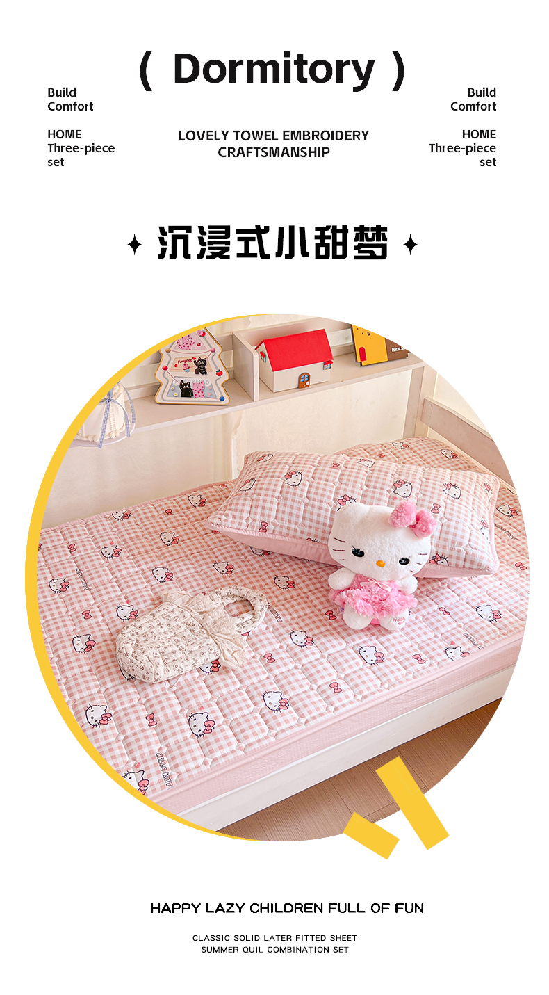 (总)星禾优选 2025新款三丽鸥加厚水洗双层纱花边款四件套,红果酱kt,面包集合,元气kt,钢琴kt,kt酪-蓝,千层家族,ky贩卖机,黑调格kt,奶酪 kt