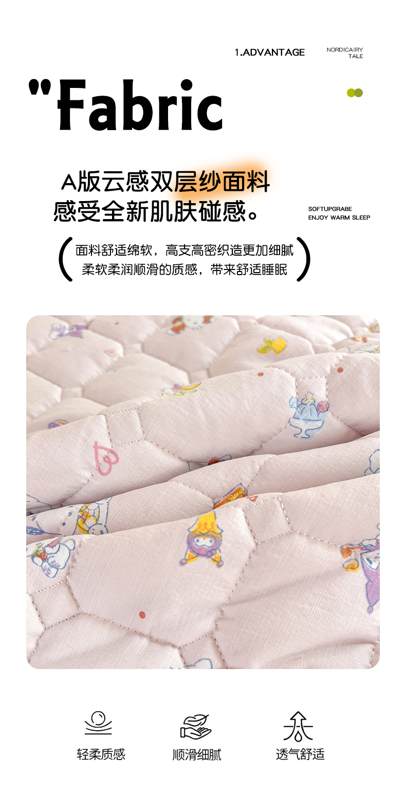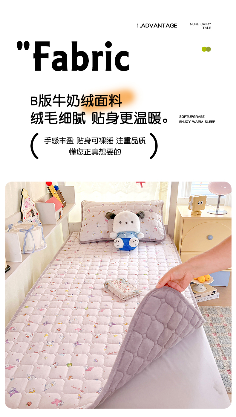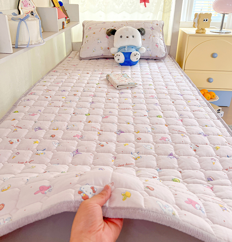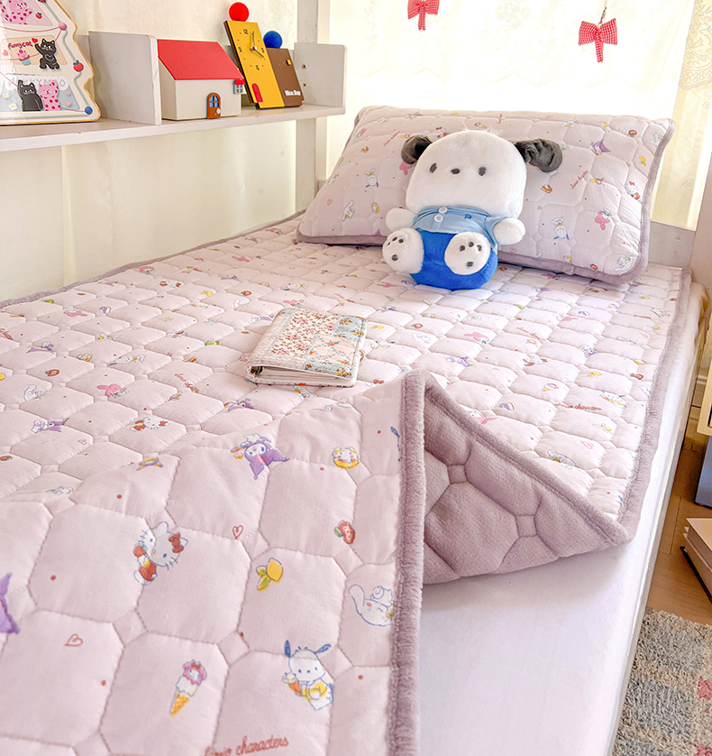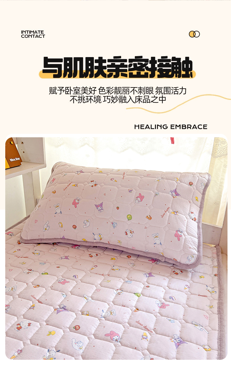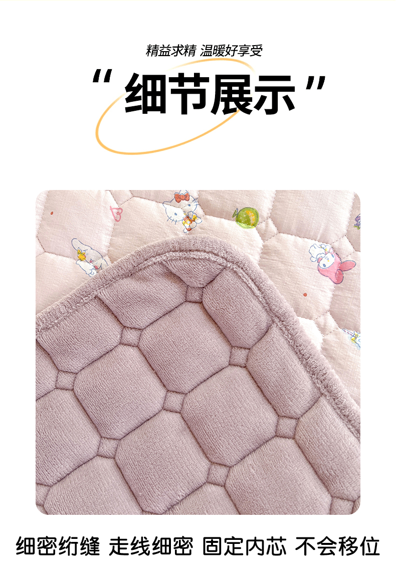 商品名称:星禾优选 2025新款三丽鸥云感双层纱牛奶绒夹棉床垫平铺款 平铺款-丽鸥星球