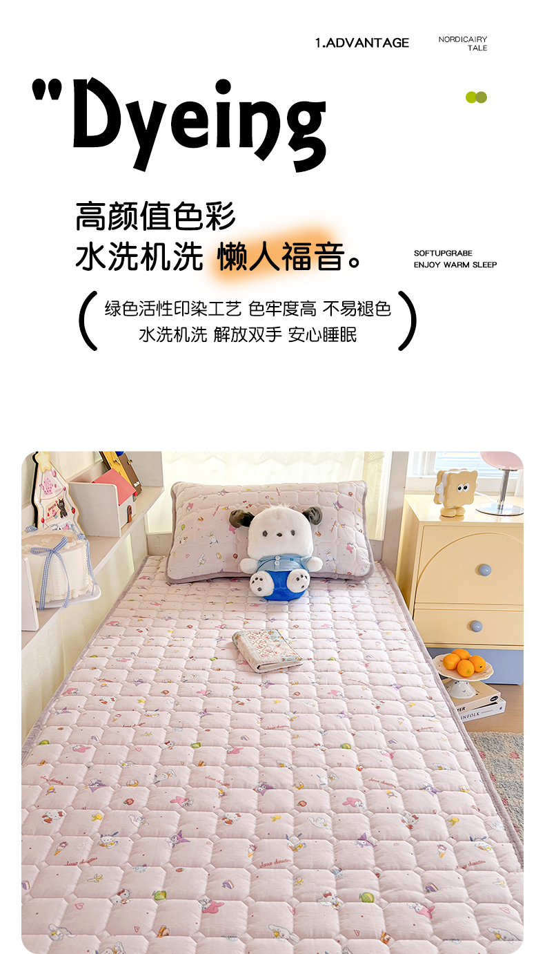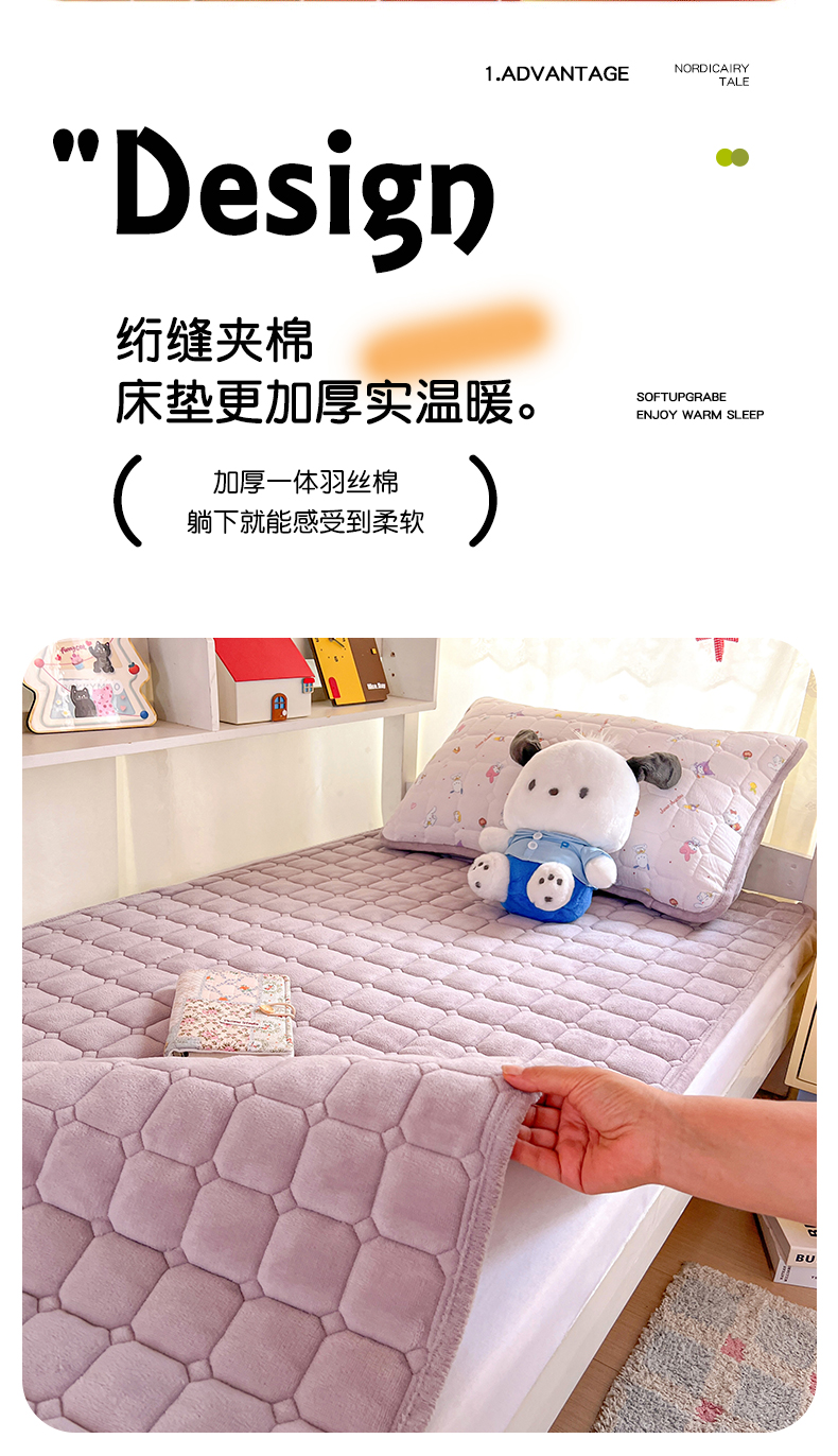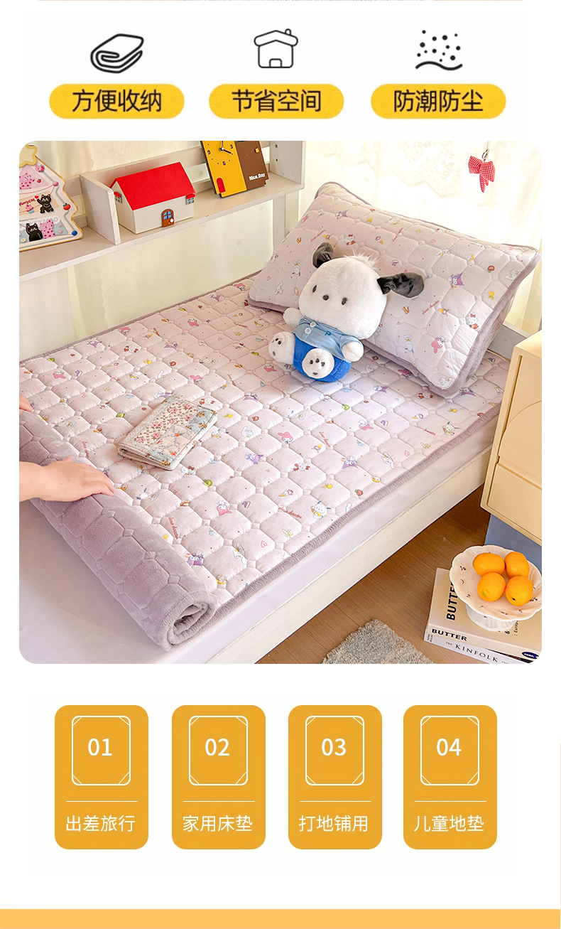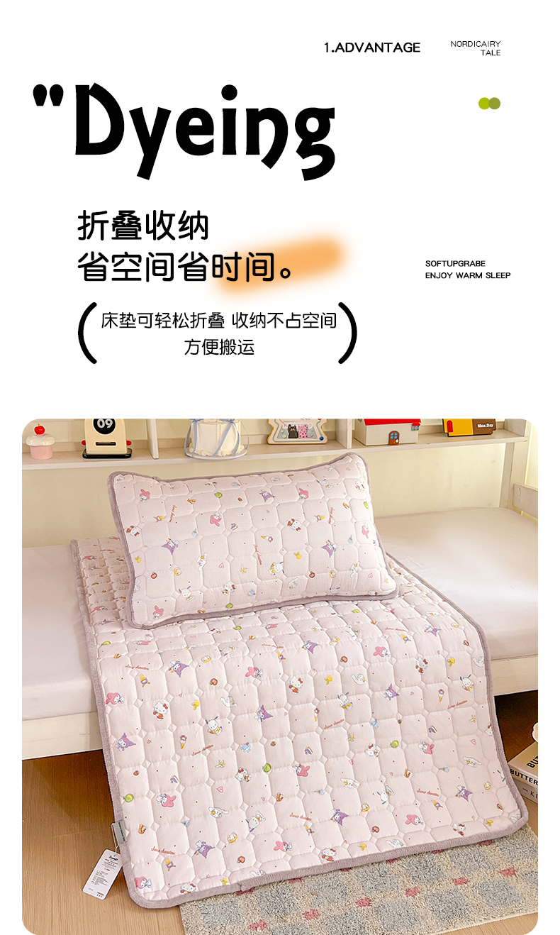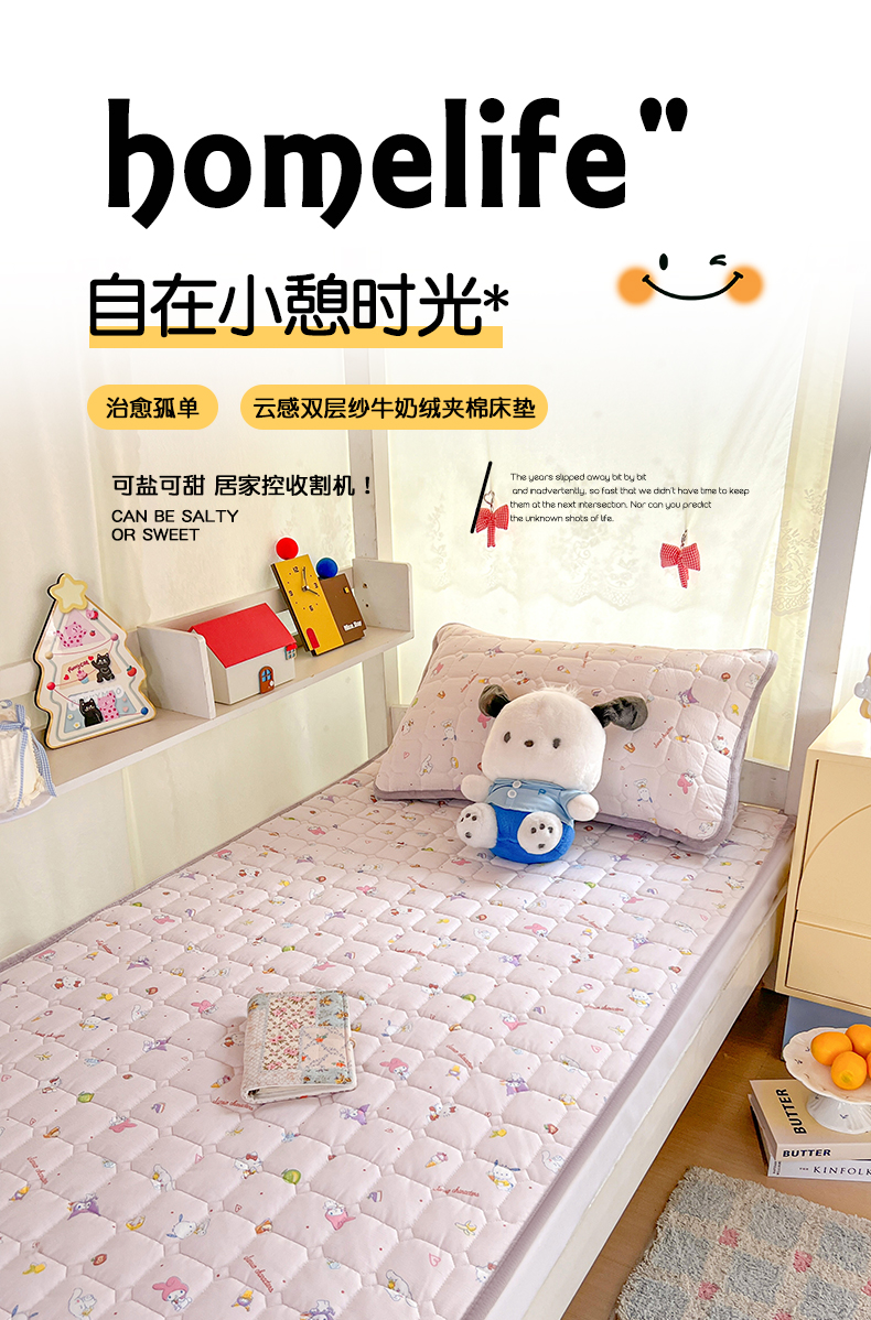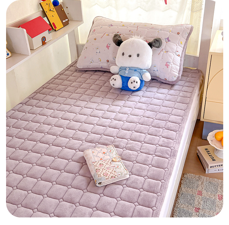 商品名称:星禾优选 2025新款三丽鸥云感双层纱牛奶绒夹棉床垫平铺款 平铺款-丽鸥星球