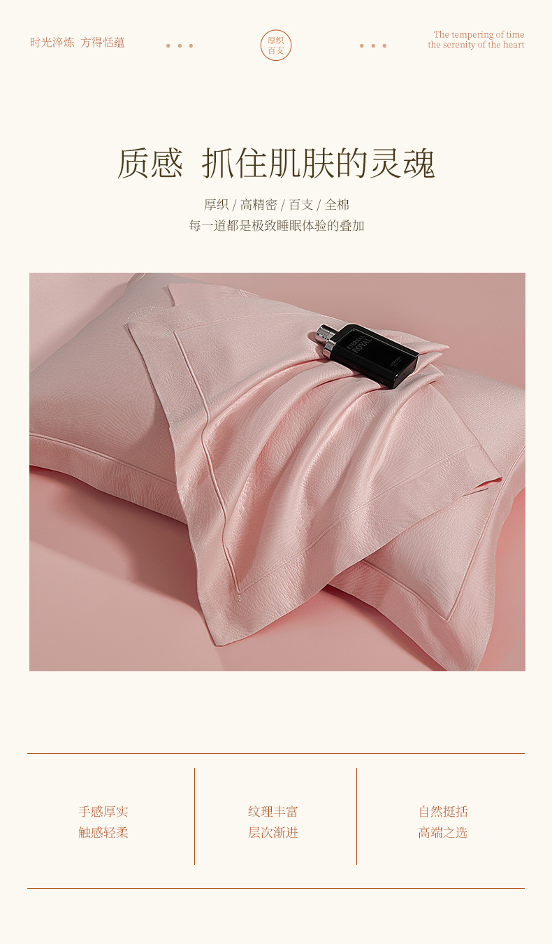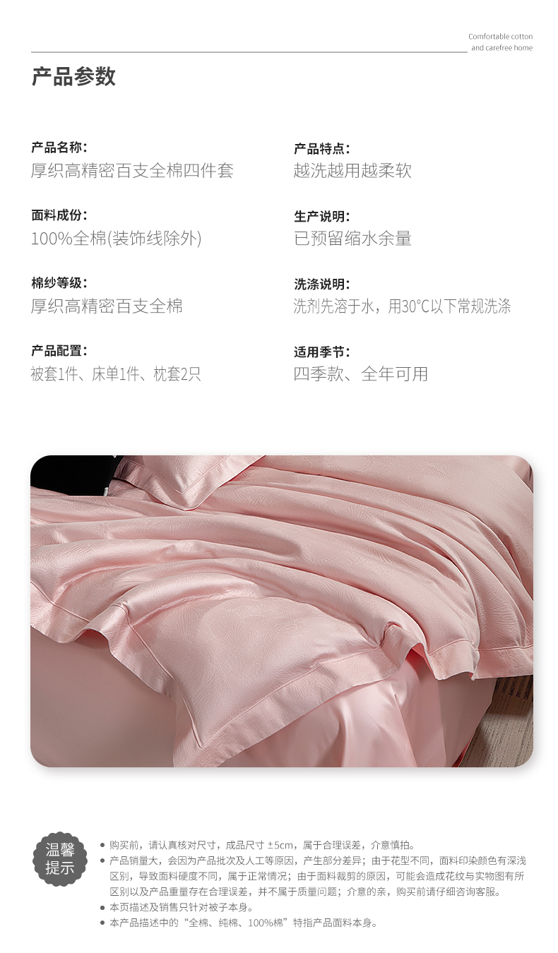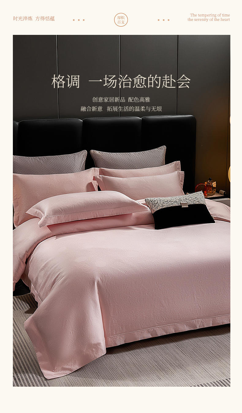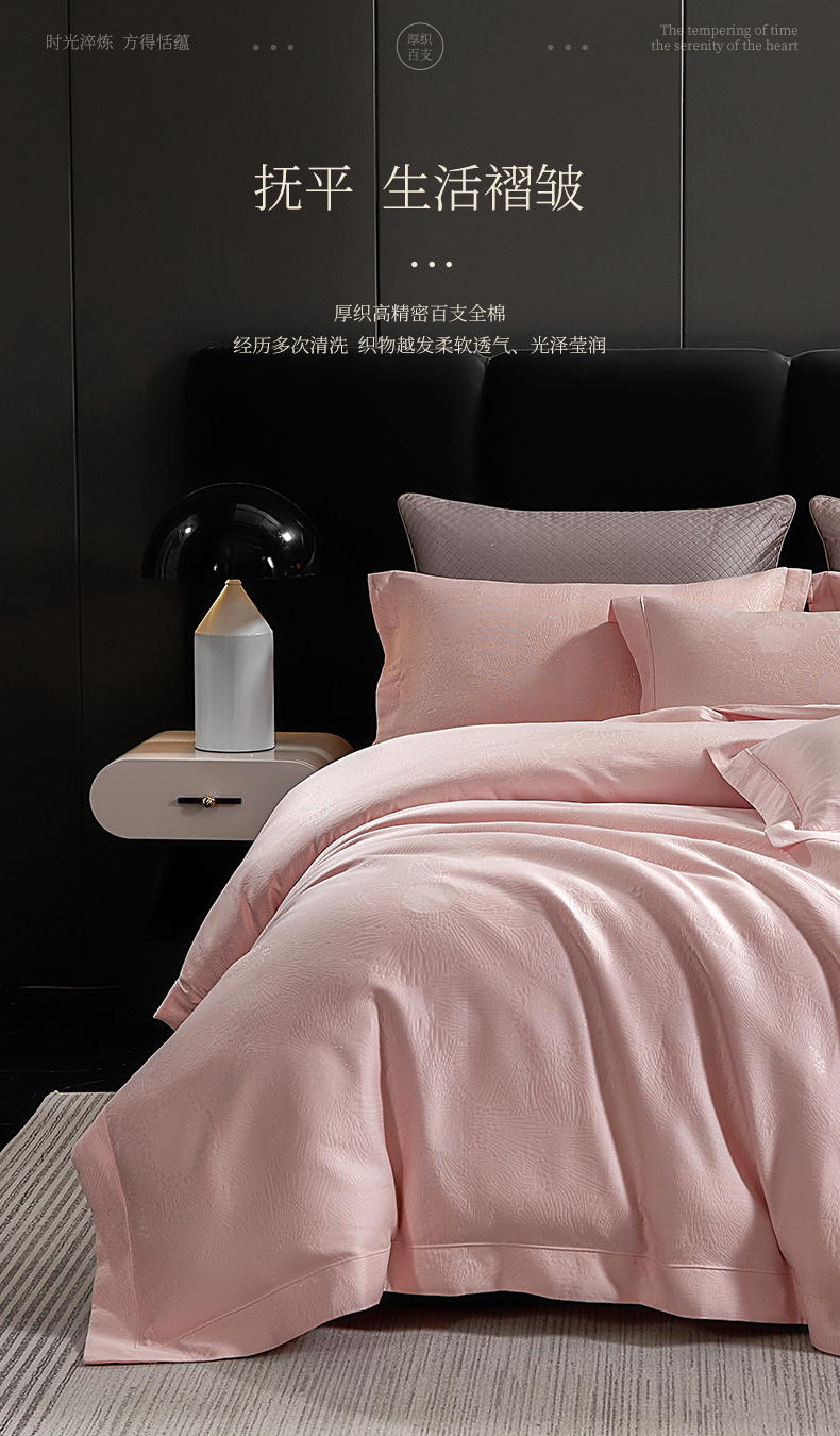 商品名称:元元家居(元元被业) 2025新款百支全棉高精密厚织系列四件套-恬蕴系列 恬蕴-樱花粉