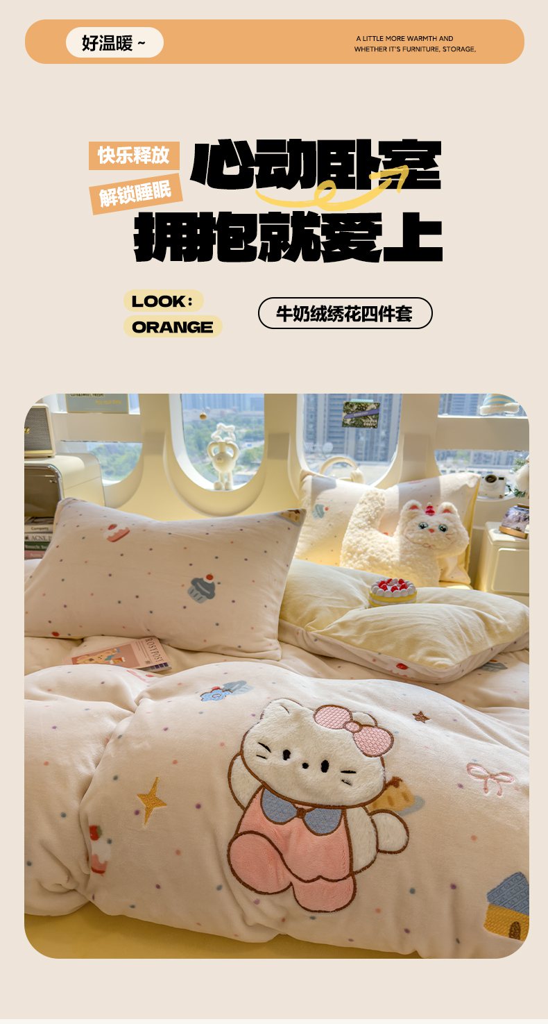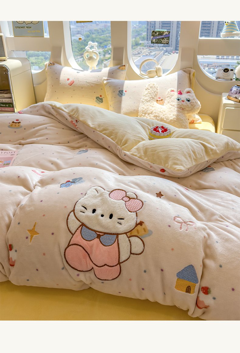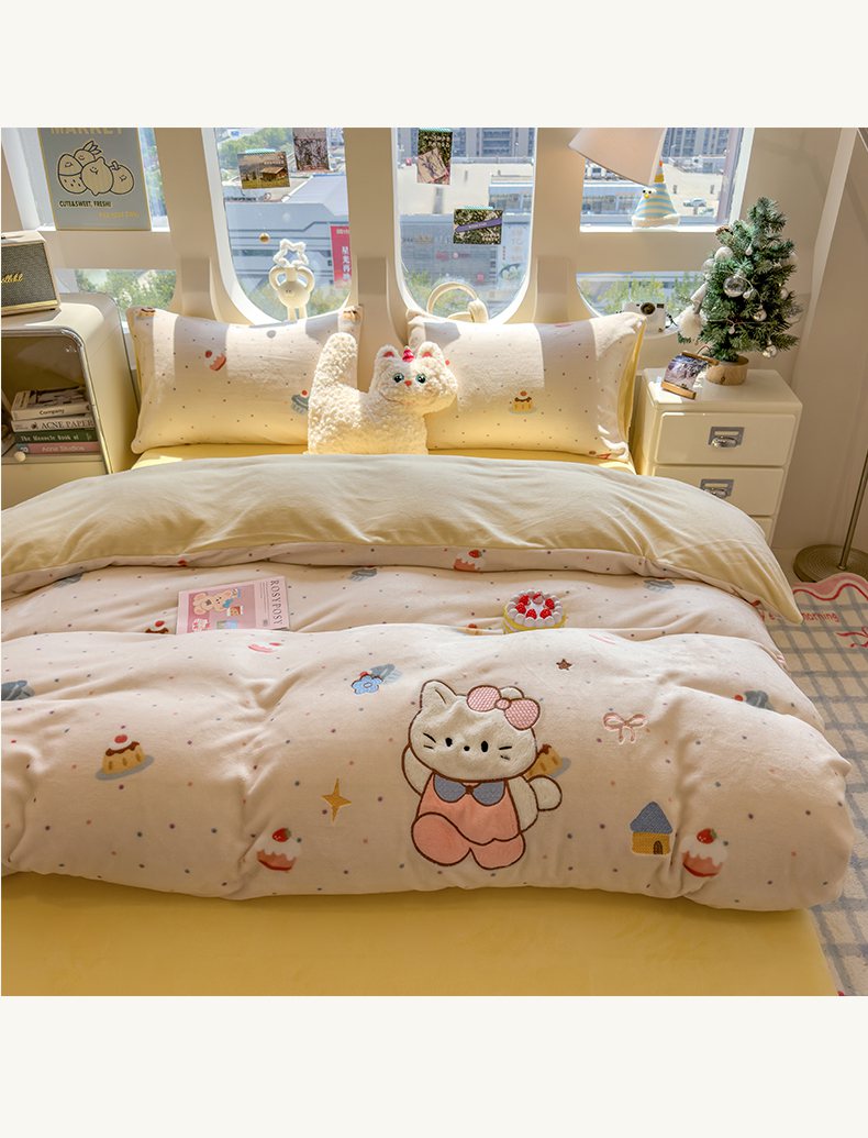 摩妮卡 2025新款卡通牛奶绒刺绣四件套系列 甜点世界