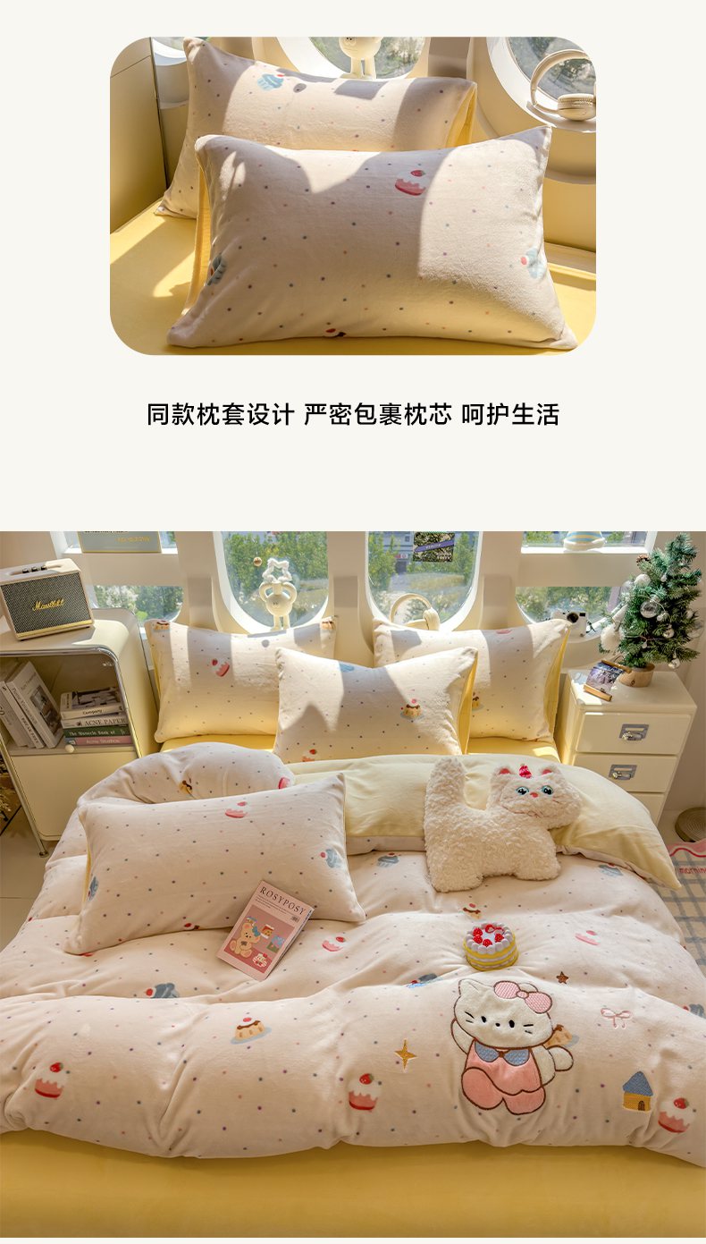 (总)摩妮卡 2025新款牛奶绒枕套混搭卡通复古四件套,粉帽小狗,豹纹小猫,傍晚凯蒂猫,庆祝凯蒂猫,生日小猫,甜点凯蒂猫,线条腊肠狗,幸运小猫
