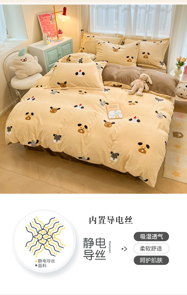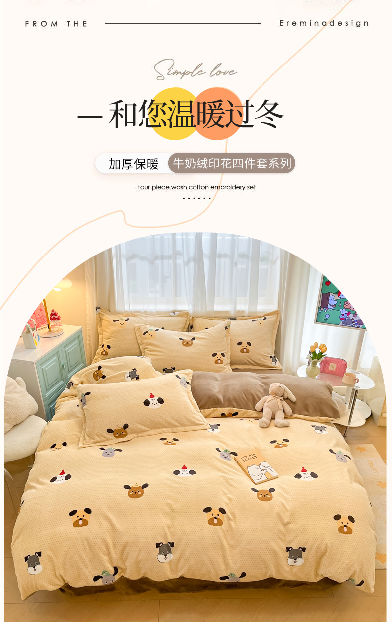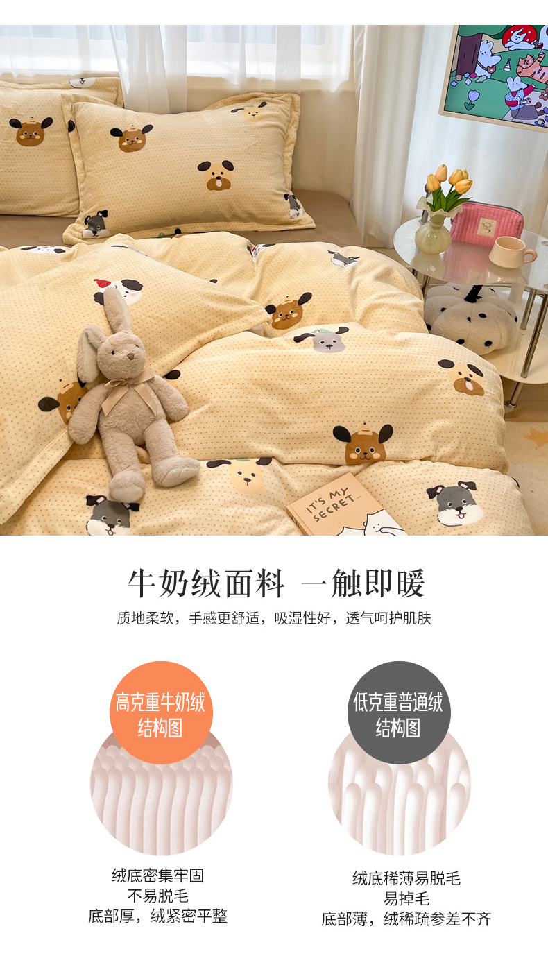 商品名称:慕尚家纺 2025新款田园花卉类印花牛奶绒高克重单被套 开心狗