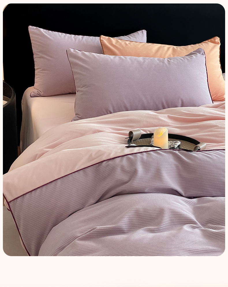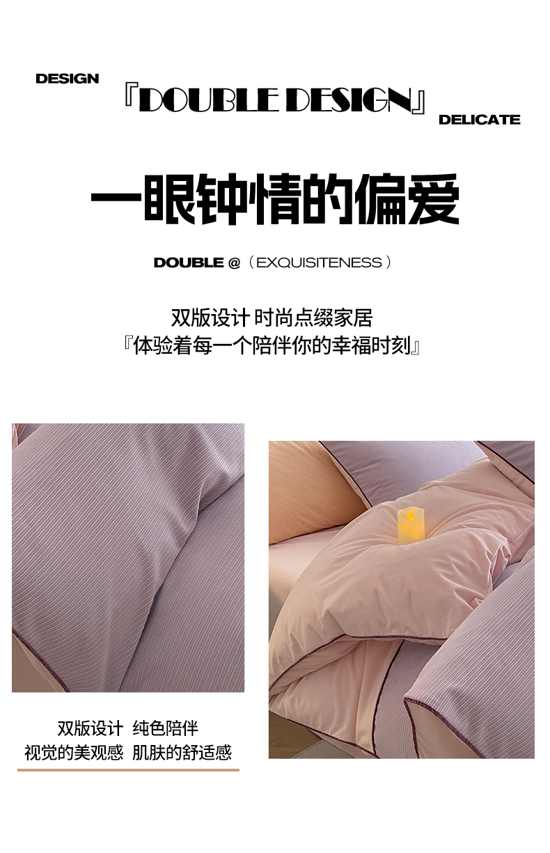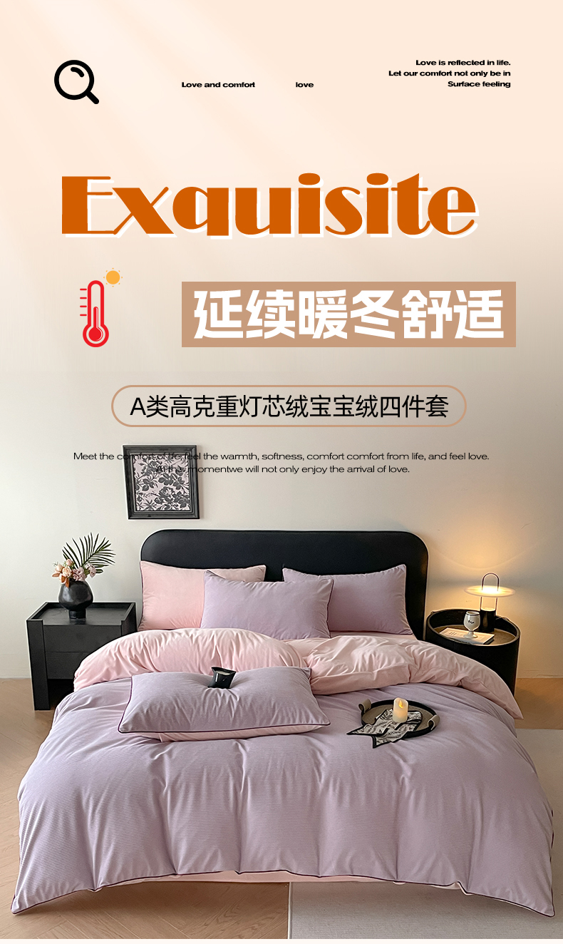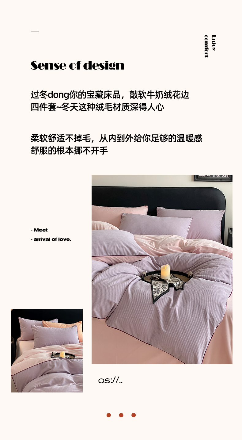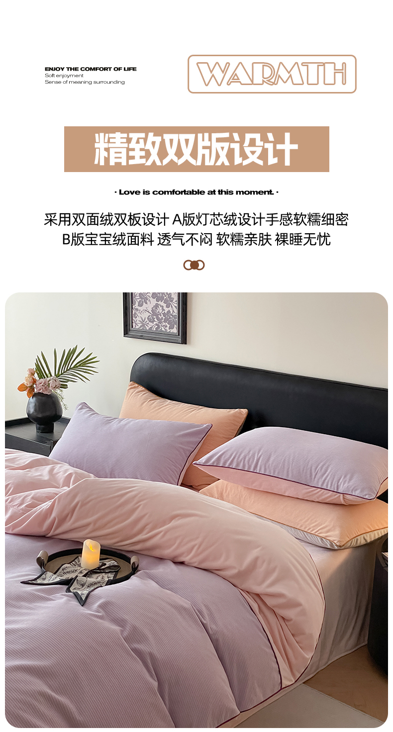 羚羊语家纺 2025新款280克灯芯绒婴儿绒四件套高级嵌绳拼接款水晶绒宝宝绒牛奶绒床单床笠款三件套-奶芙绒系列 紫粉泡泡