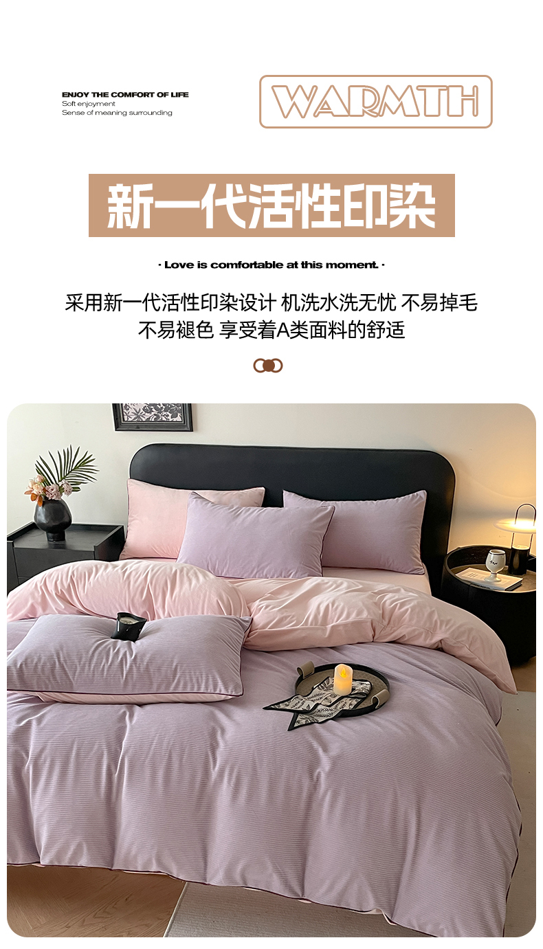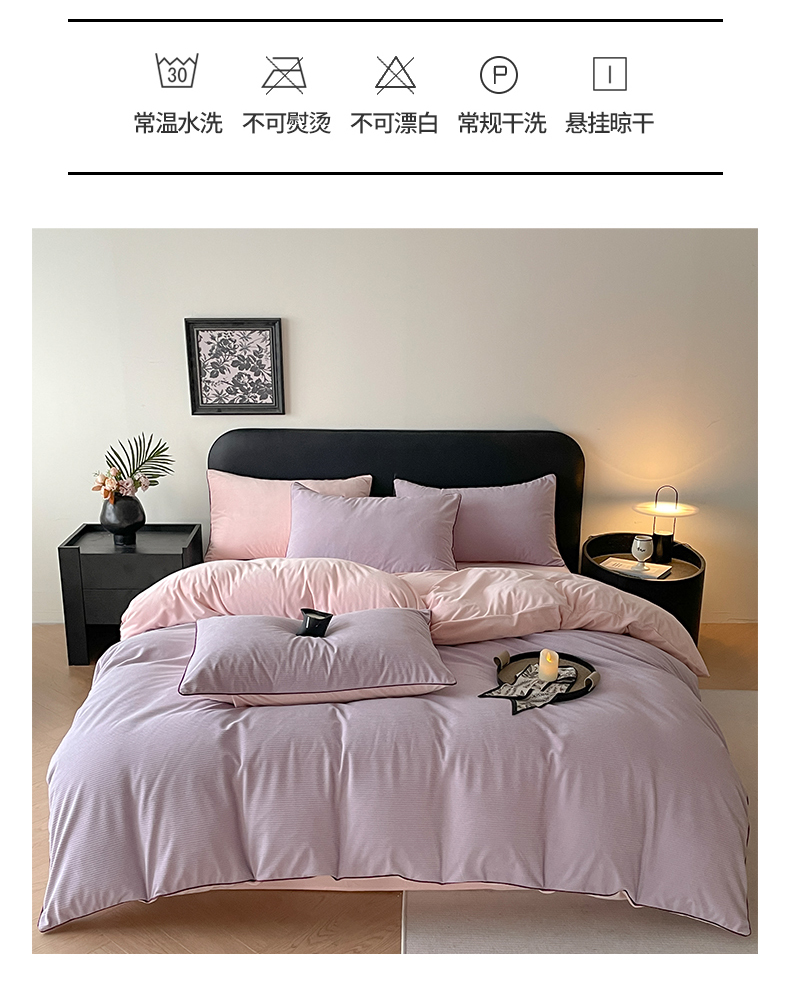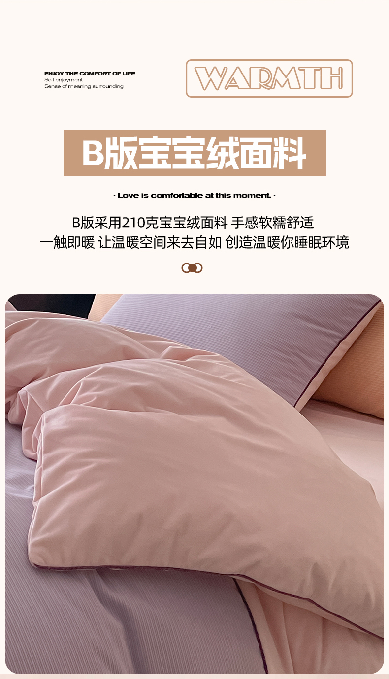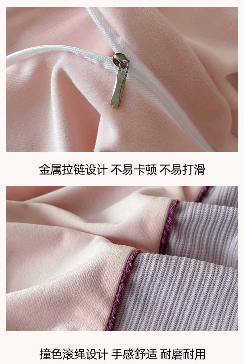 商品名称:羚羊语家纺 2025新款280克灯芯绒婴儿绒四件套高级嵌绳拼接款水晶绒宝宝绒牛奶绒床单床笠款三件套-奶芙绒系列 紫粉泡泡