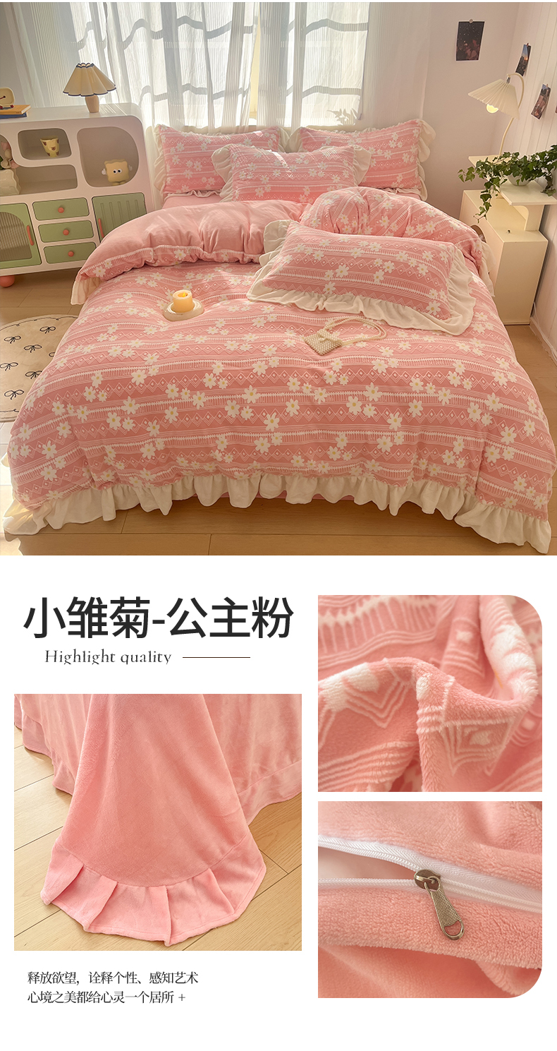 (总)爱家(原缔乐家纺) 2025新款牛奶雕花绒四件套-小雏菊,小雏菊-公主粉,小雏菊-奶昔白,小雏菊-天空兰