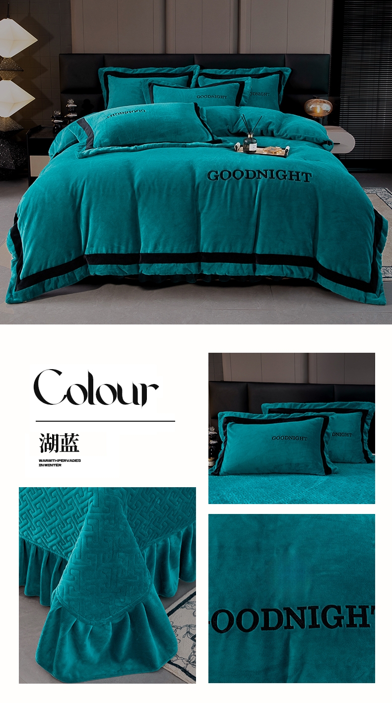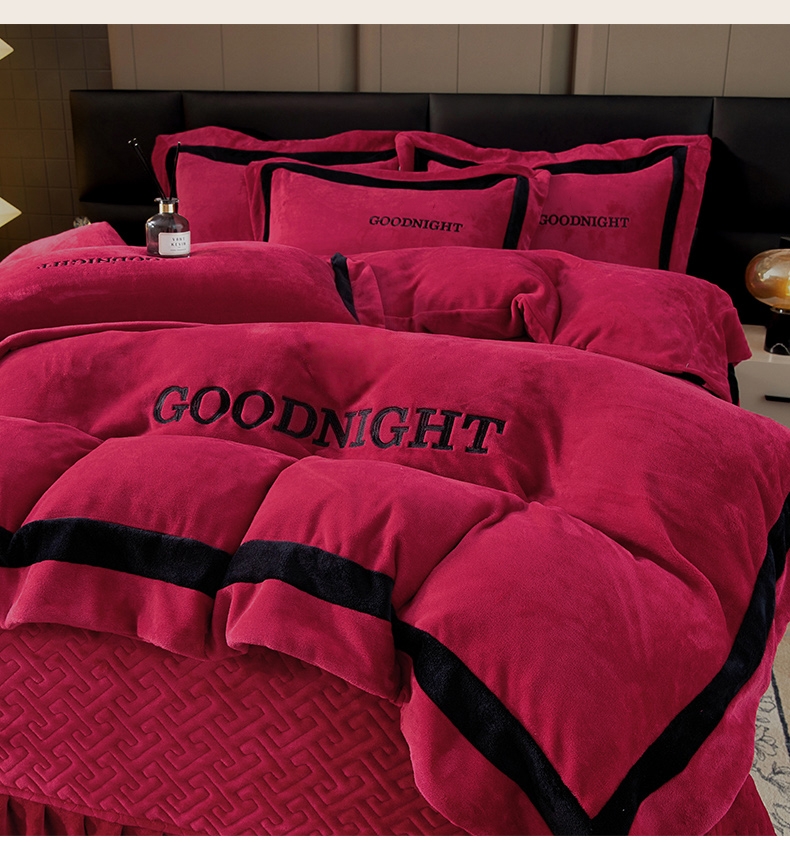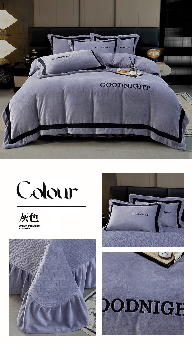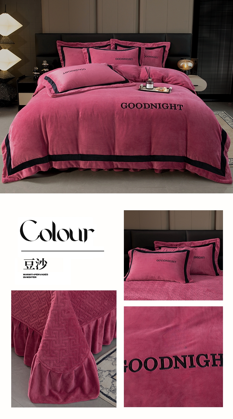 (总)畅畅家纺 2024新款高克重加厚保暖冬季牛奶绒纯色床盖款四件套,豆沙,灰色,天蓝,玉色,中国红