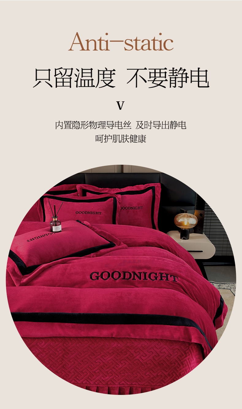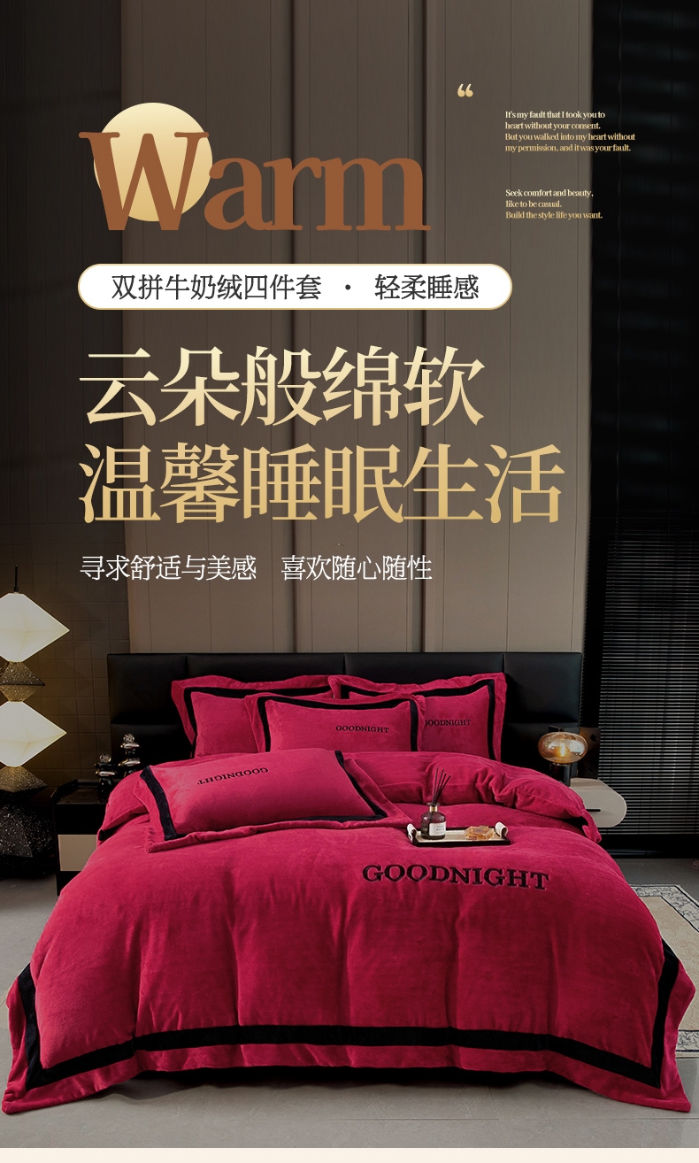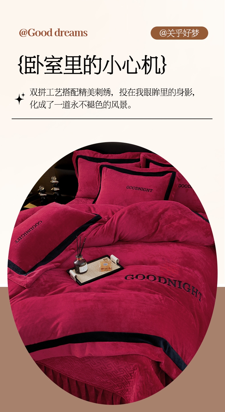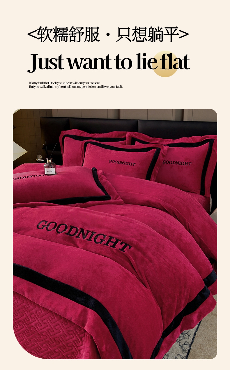 (总)畅畅家纺 2024新款高克重加厚保暖冬季牛奶绒纯色床盖款四件套,豆沙,灰色,天蓝,玉色,中国红