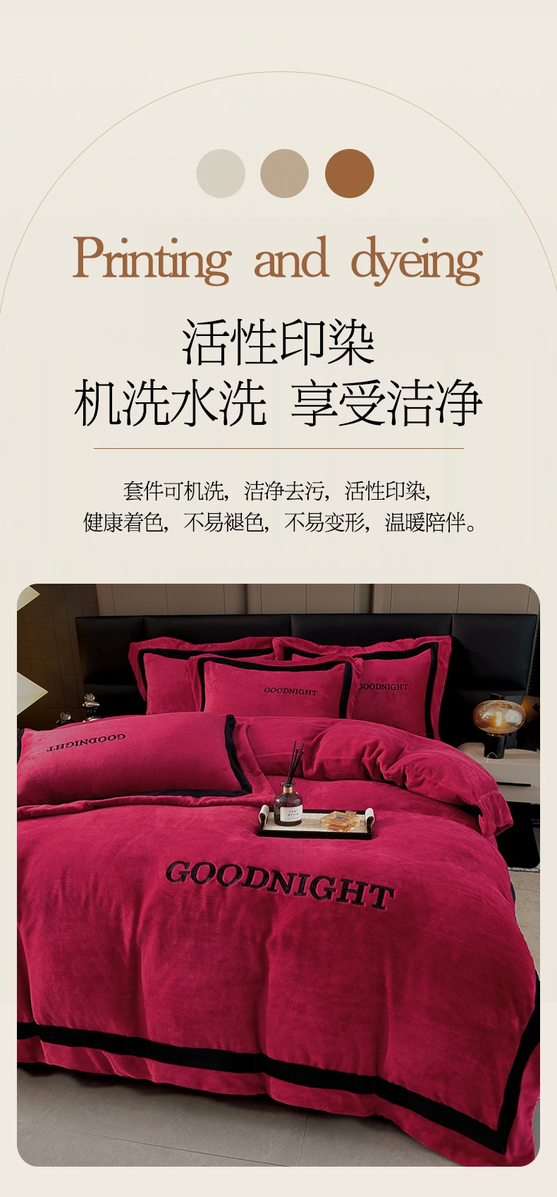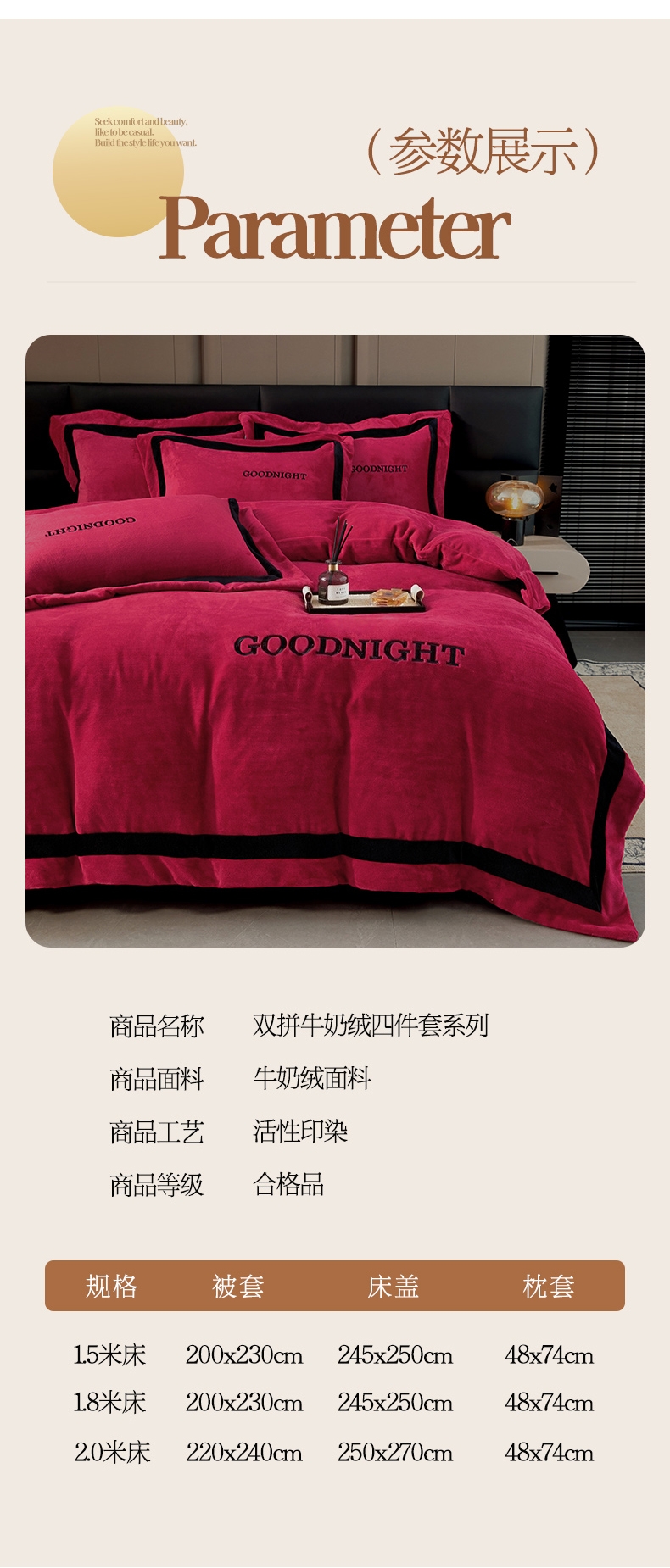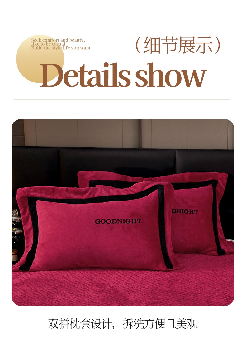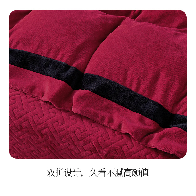 商品名称:畅畅家纺 2025新款亲肤舒适双拼牛奶绒纯色绣花床盖四件套 豆沙