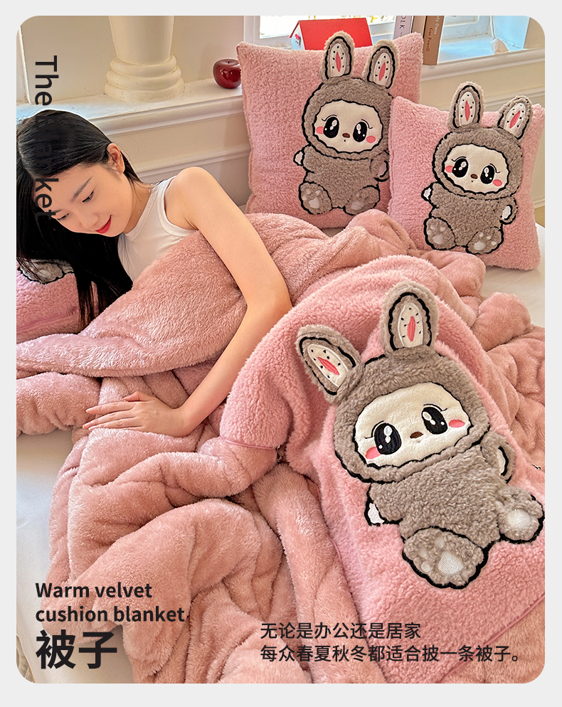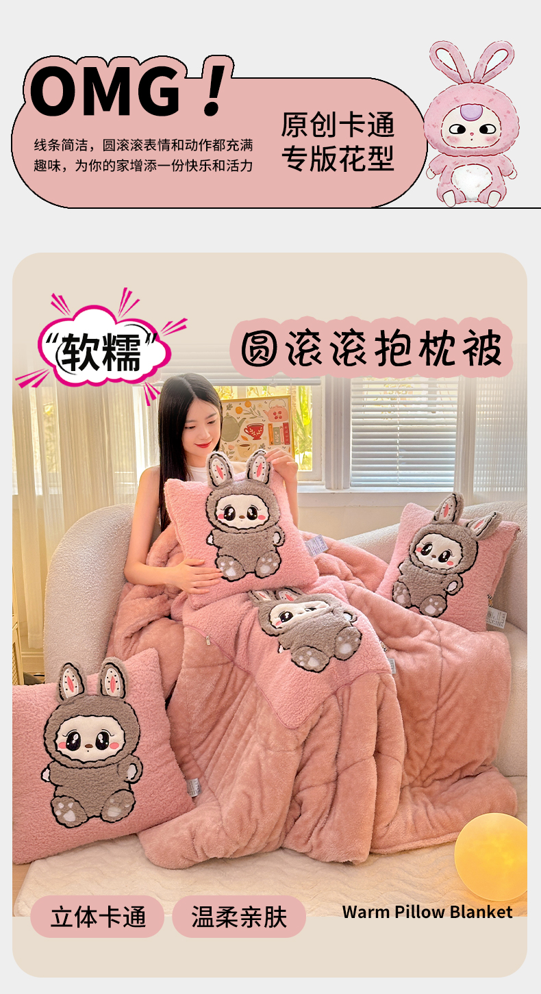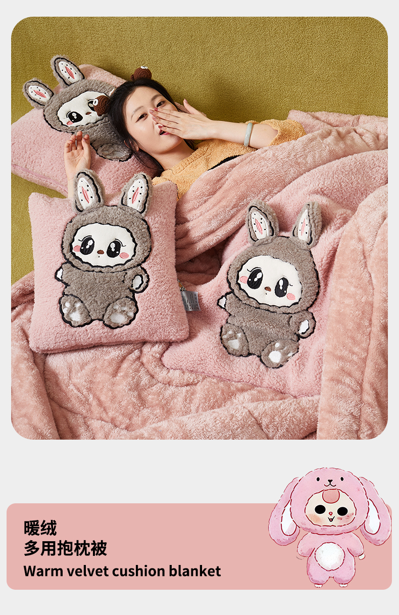 (总)古本家居 2026新款全棉胭脂兔抱枕被系列,全棉立体胭脂兔粉格,全棉立体胭脂兔蓝格,全棉立体胭脂兔绿格