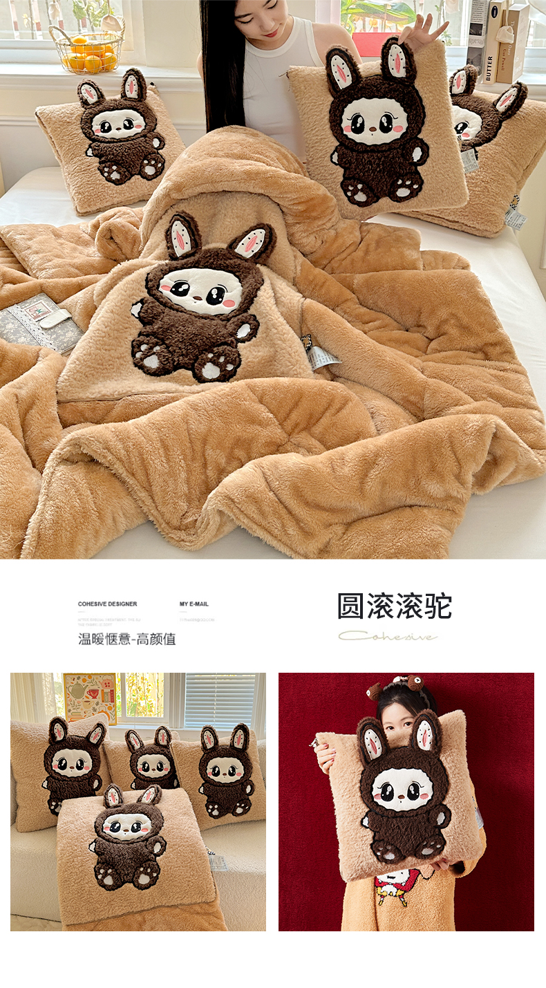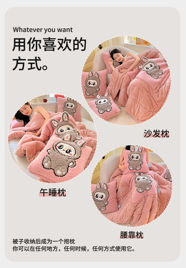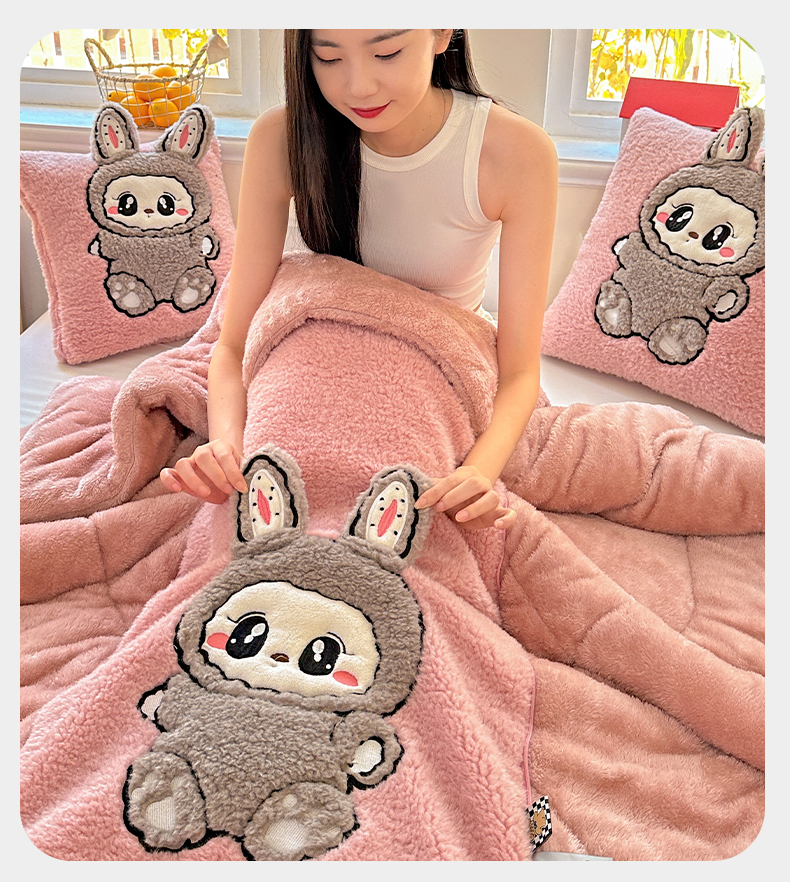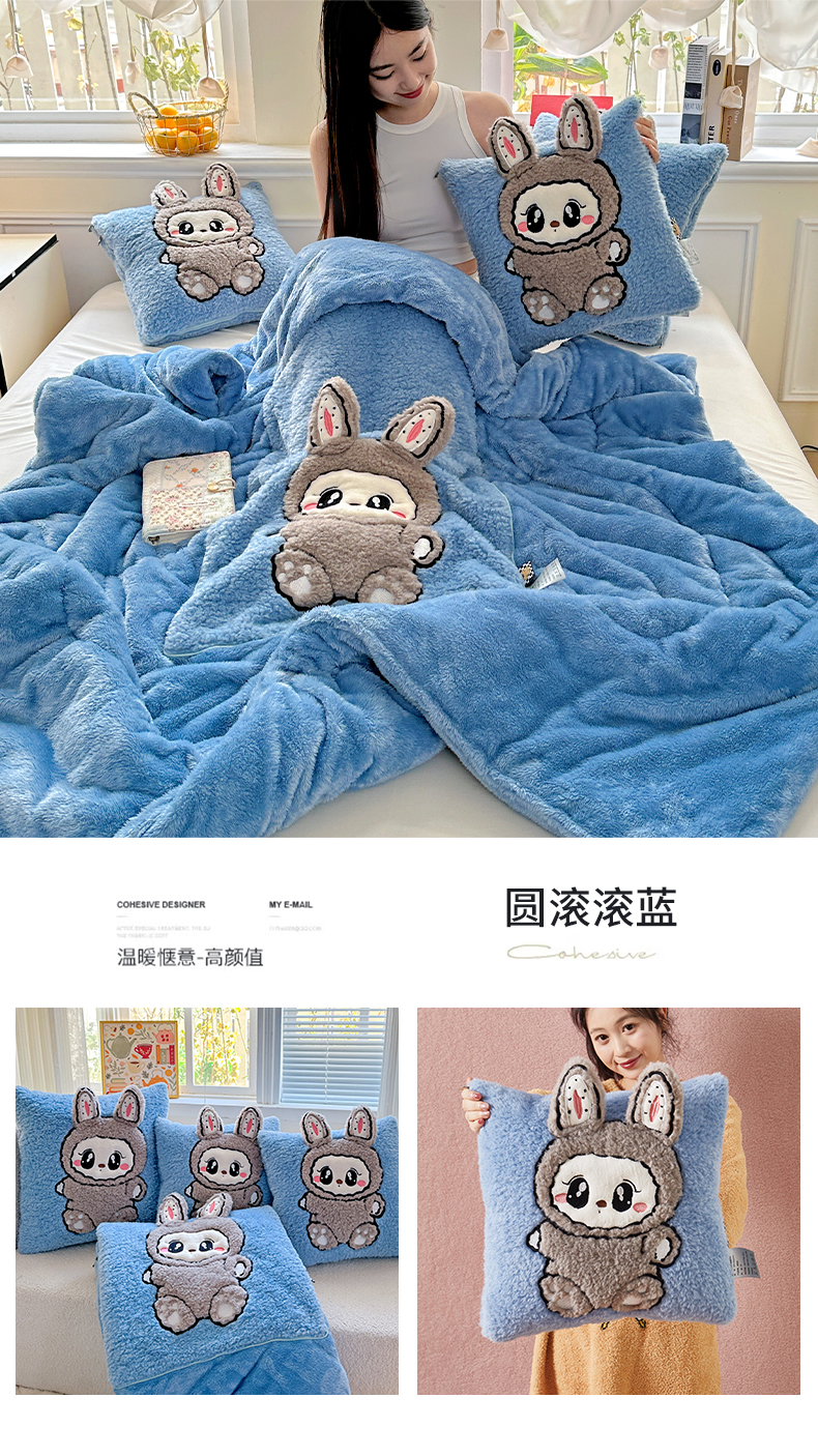 (总)古本家居 2026新款全棉胭脂兔抱枕被系列,全棉立体胭脂兔粉格,全棉立体胭脂兔蓝格,全棉立体胭脂兔绿格