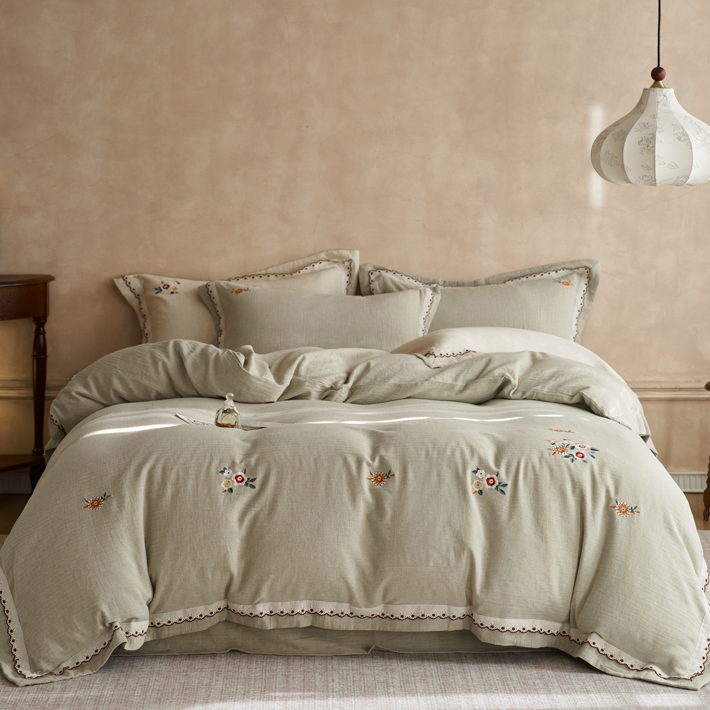 商品名称:涞澳家纺 2025新款棉麻皱皱纱四件套 夜里无星