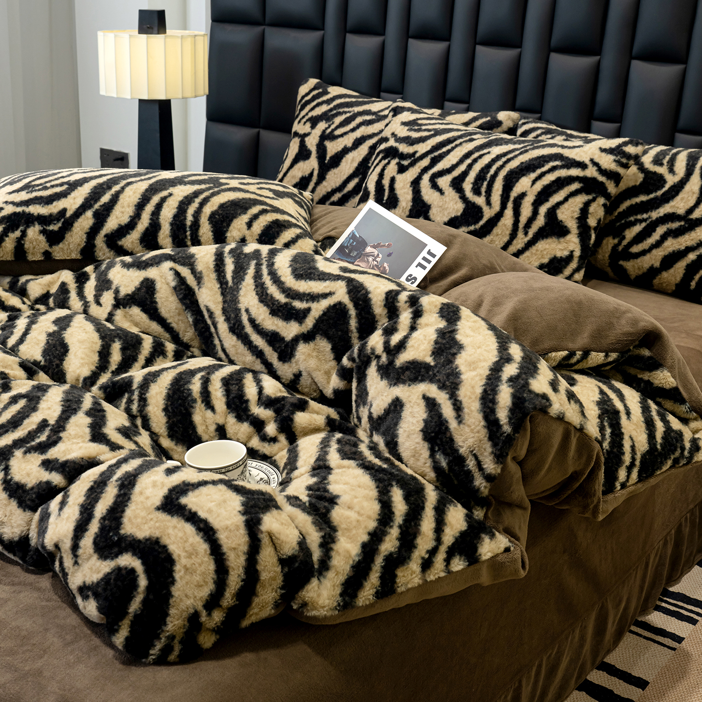 豫见家纺 2025新款法式美拉德高克重兔毛床单款四件套兔毛简单款 虎纹