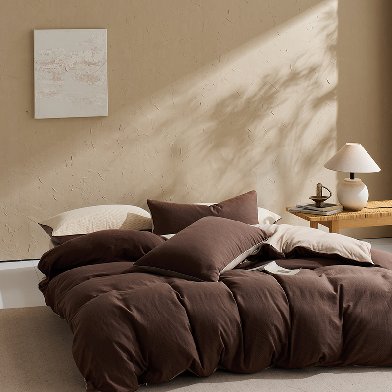 商品名称:LADYCOCO可可家居 2025新款针织+梭织夹棉四件套-滚绳款 双层纱 印花咖色