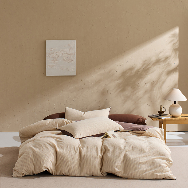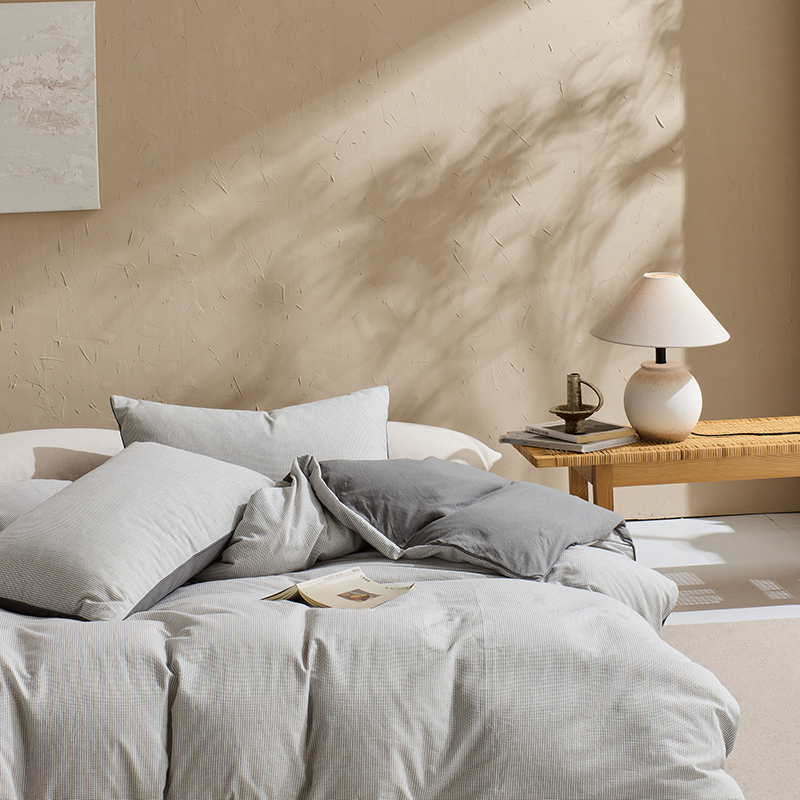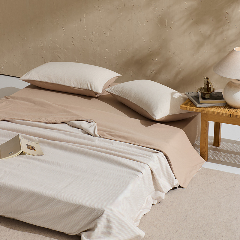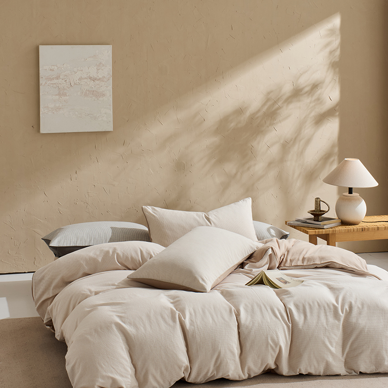 (总)LADYCOCO可可家居 2025新款三开口针织+梭织 夹棉四件套 优易套/U易套 三开口被套,唯一专利发明单位,全球专利布局,泡泡纱 条纹粉色,泡泡纱 条纹灰色,星羽皱 格子米色,星羽皱 格子灰色,双层纱 印花咖色,双层纱 印花米色