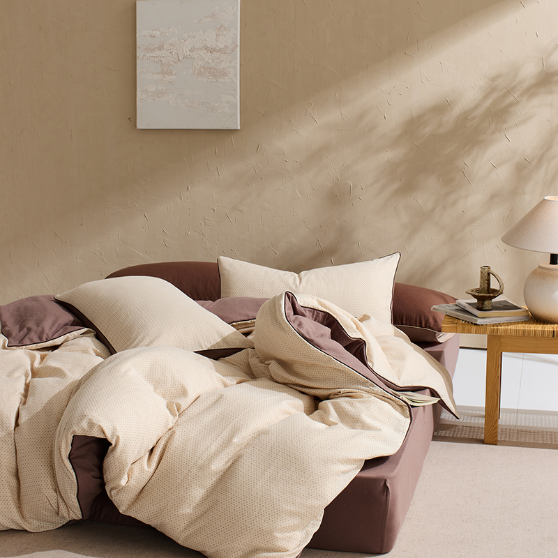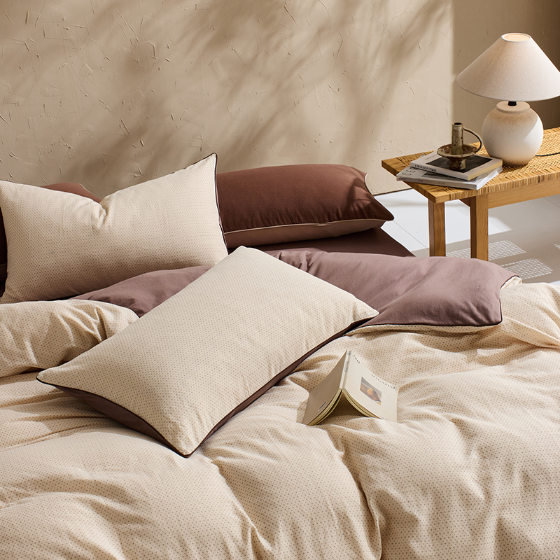 (总)LADYCOCO可可家居 2025新款纯棉针织四件套(控价不低于279元),粉色,咖色,米色