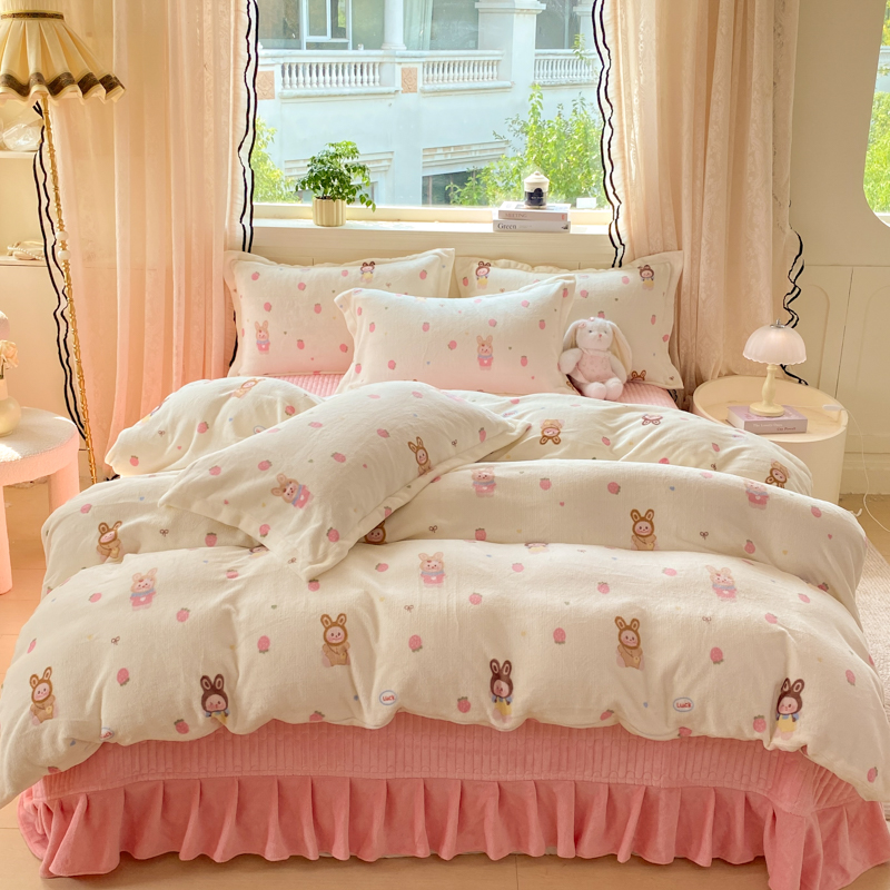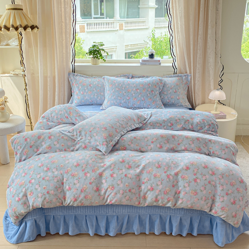 商品名称:富之航家纺 2025秋冬新款牛奶绒印花床盖四件套 花栖礼