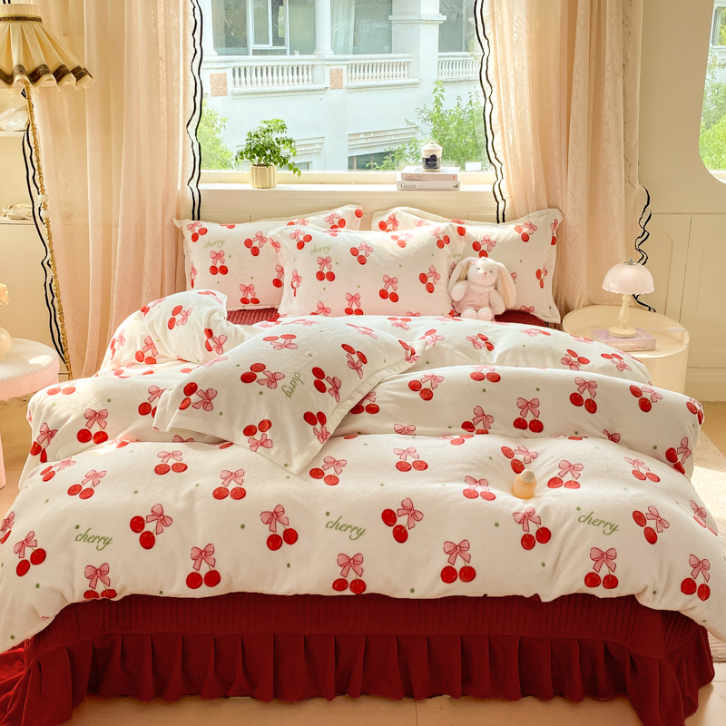 商品名称:富之航家纺 2025秋冬新款牛奶绒印花床盖四件套 幸运时光