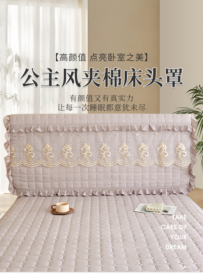 (总)十个点家纺 2025新款公主风夹棉床头罩-绫罗系列,爱意萌萌,贝贝熊,格桑花,海棠花,蝴蝶兔,花千骨,米兰,木棉花,山茶花,同心结,心相印,心愿-米