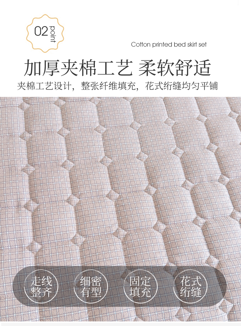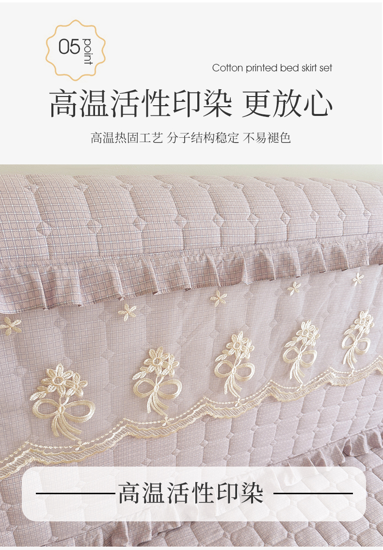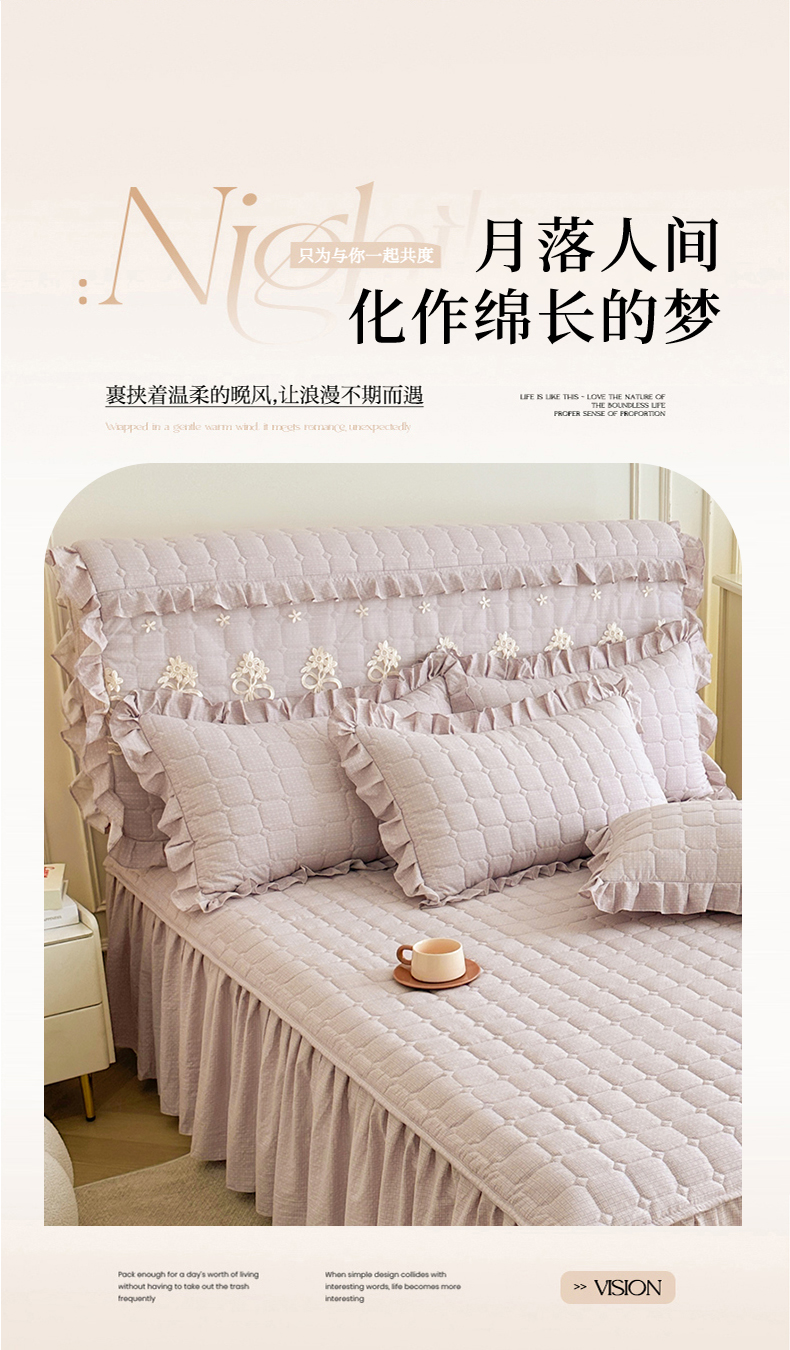 (总)十个点家纺 2025新款千鸟格磨毛绗缝夹棉纯色花边床裙三件套,经典白色,经典兰色,经典浅灰,经典浅驼,经典深灰,经典玉粉