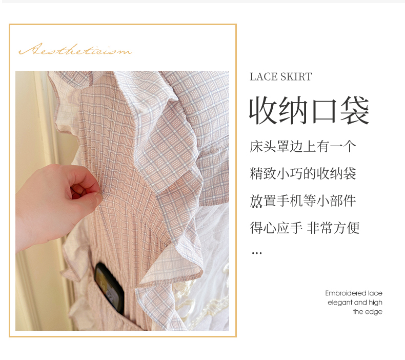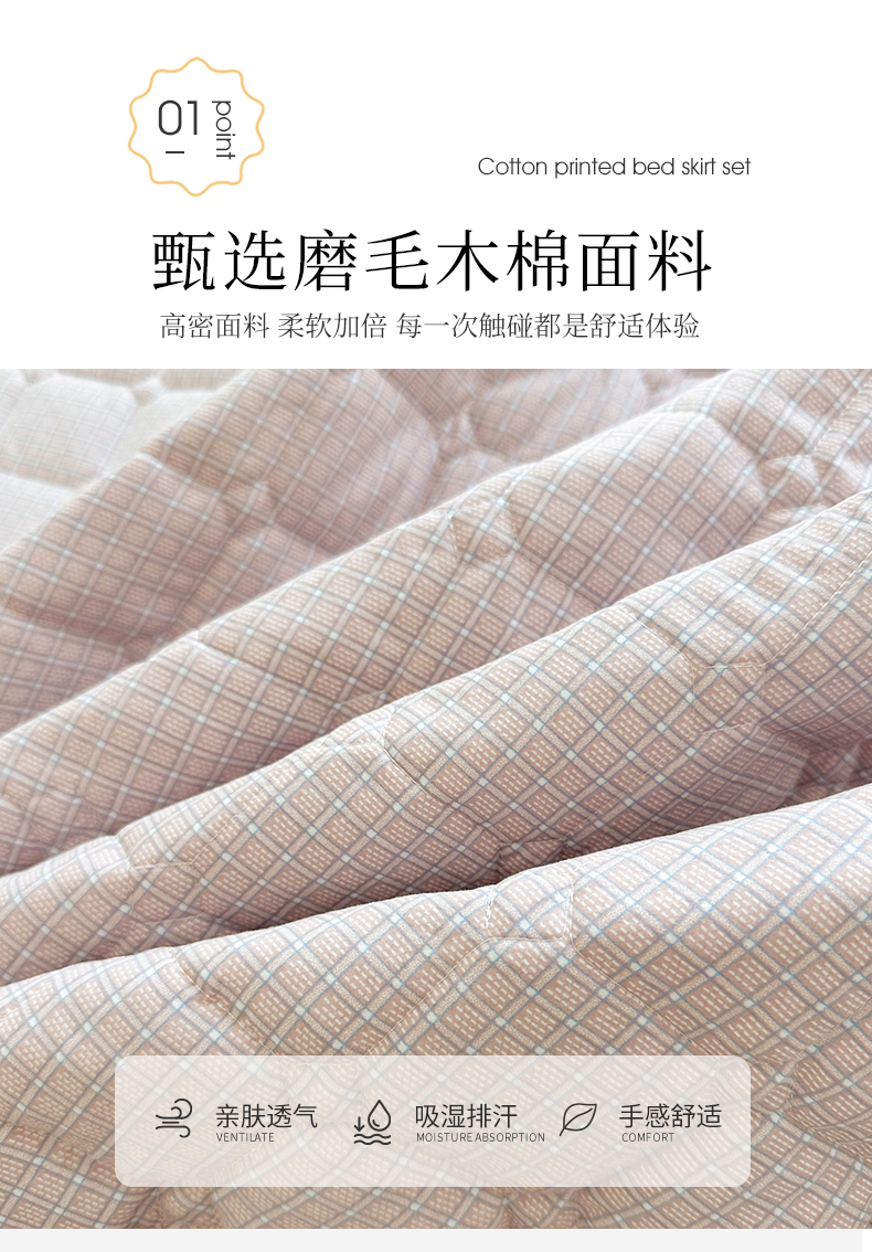 (总)十个点家纺 2025新款加厚磨毛木棉床裙三件套-格小格系列,格小格-粉,格小格-金驼,格小格-咖,格小格-兰,格小格-绿,格小格-玉