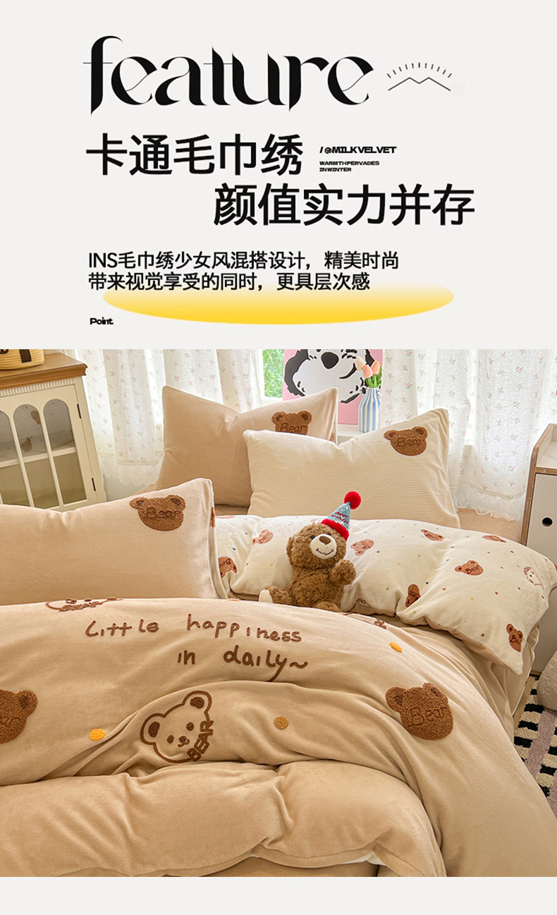当前位置: 91家纺网 > 商品网购 > 床品套件 > 四件套 > 牛奶绒四件套 > 眠博士 2025新款牛奶绒毛巾绣四件套 牛奶绒毛巾绣-熊熊