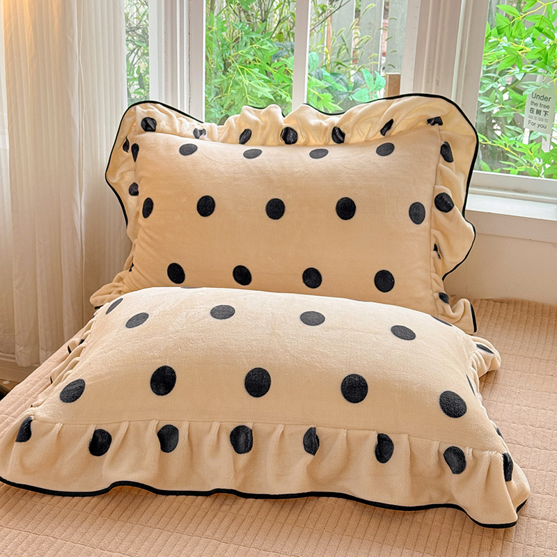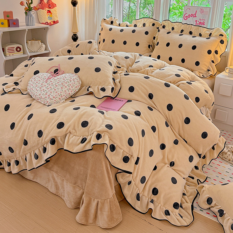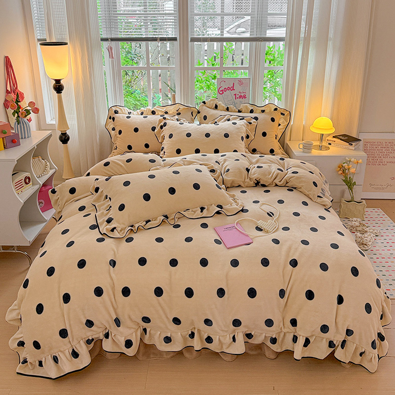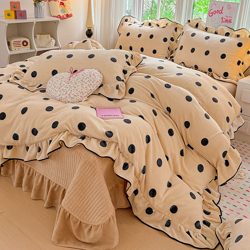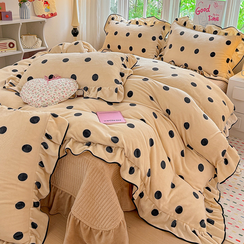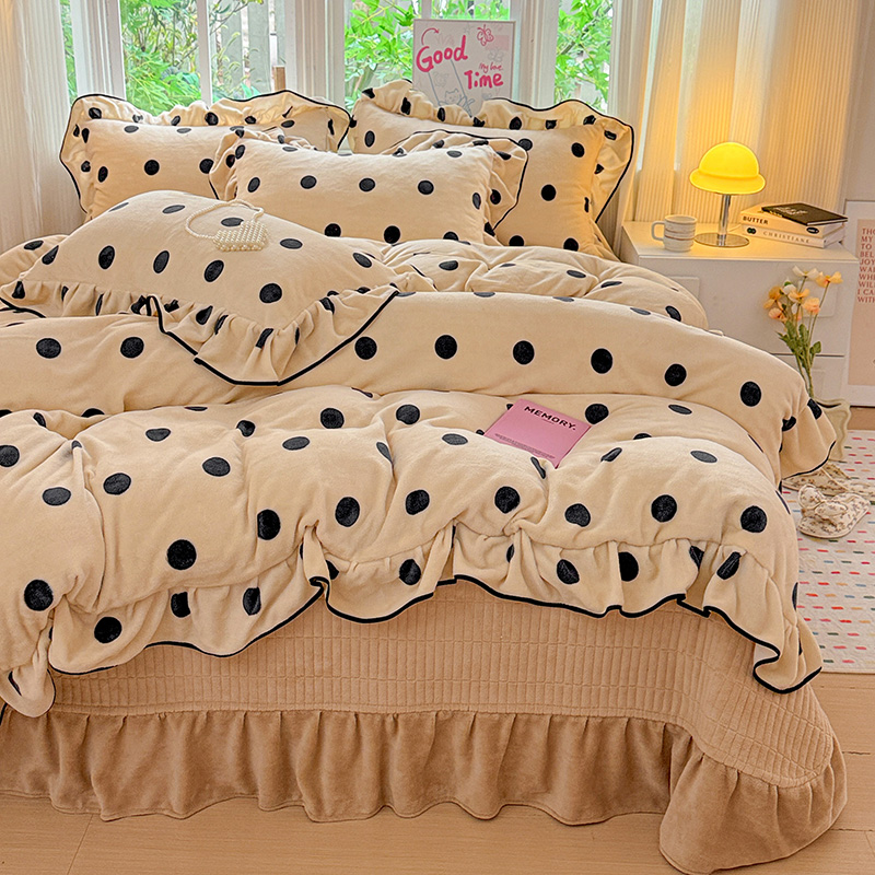 梦莱斯 2025新款加厚保暖双面牛奶绒四件套-黑色花边款 黑糖珍珠