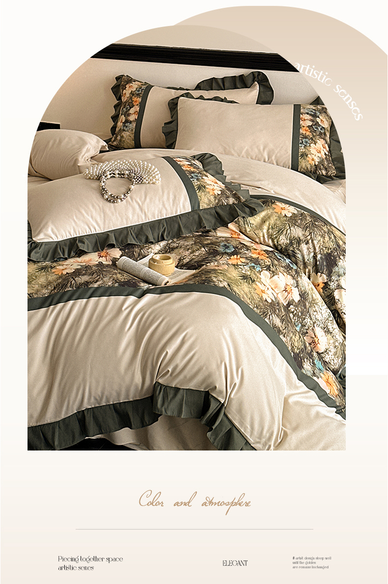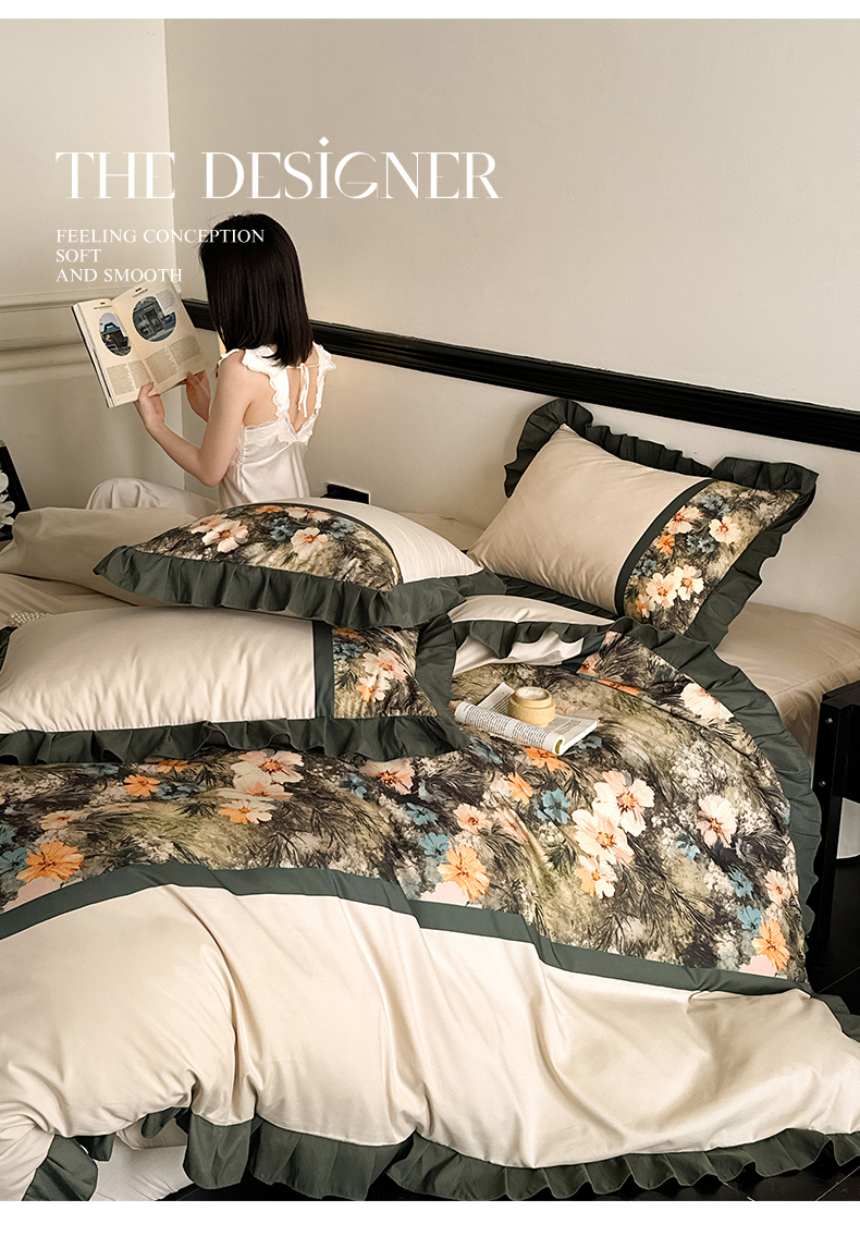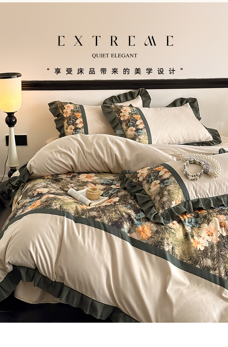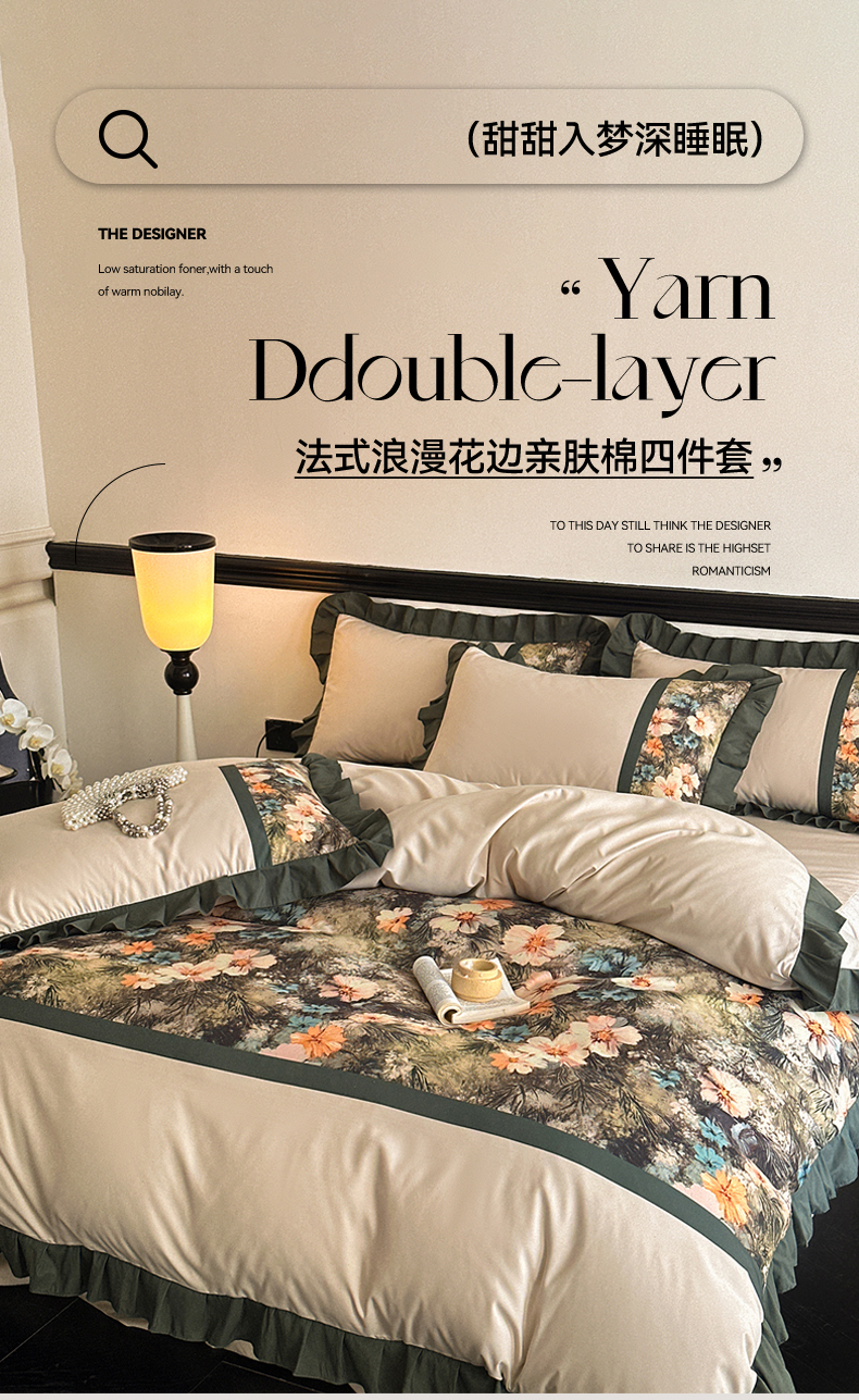 当前位置: 91家纺网 > 商品网购 > 床品套件 > 四件套 > 水洗棉四件套 > 一左一右 2025秋冬新款数码印花法式复古风花边亲肤棉磨毛水洗棉床笠床裙四件套-香澜花园 玛瑙绿