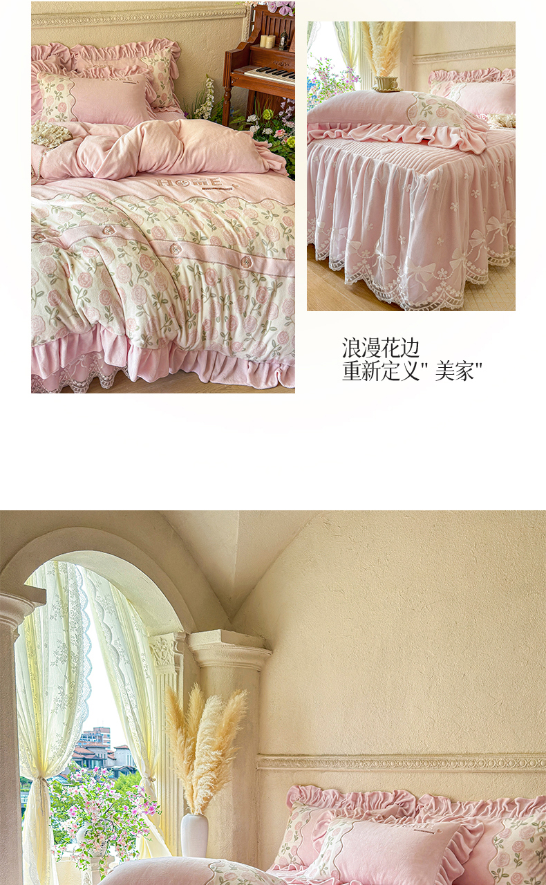 (总)宜凡家纺 2025新款兔绒提花牛奶绒夹棉床裙四件套,爱心 少女粉,爱心 粉紫,爱心 驼色,蝶舞 大红,蝶舞 米色,蝶舞 浅紫,蝶舞 玉色,简爱 苍青,简爱 豆沙紫,简爱 玉色,樱桃 苍青,樱桃 豆沙紫,樱桃 奶油白