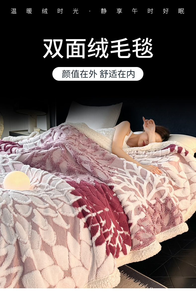 (总)丹本家纺 2025新款双层阳离子叶子提花塔芙绒羊羔绒跨境双层毛毯盖毯毯子,叶子白色,叶子粉色,叶子灰色,叶子橘色,叶子咖色,叶子驼色