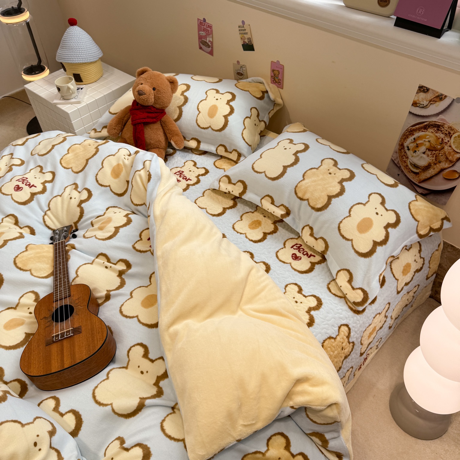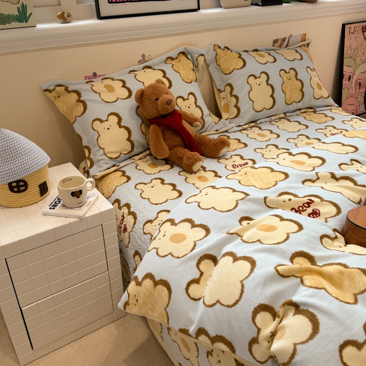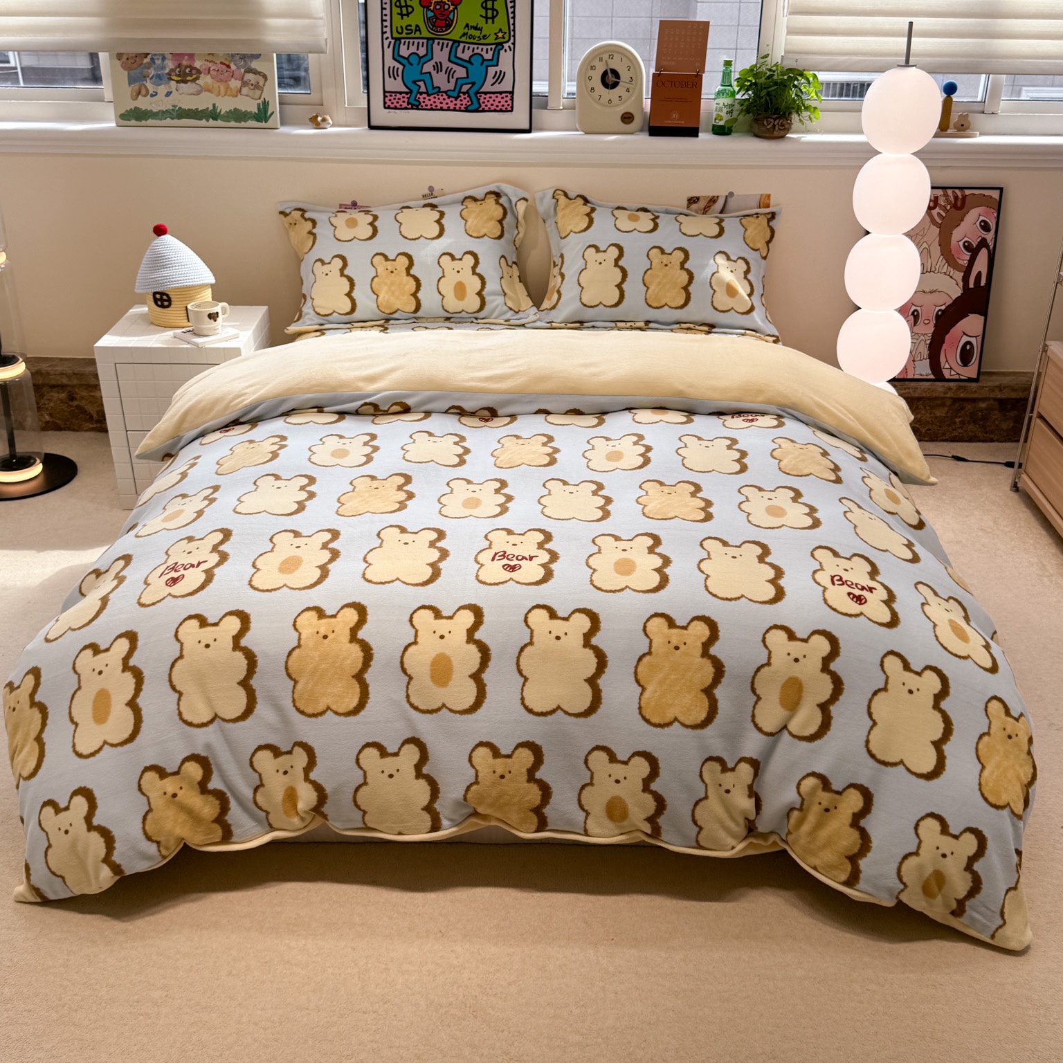 潘朵拉 2025新款ins风牛奶绒床盖四件套 饼干熊