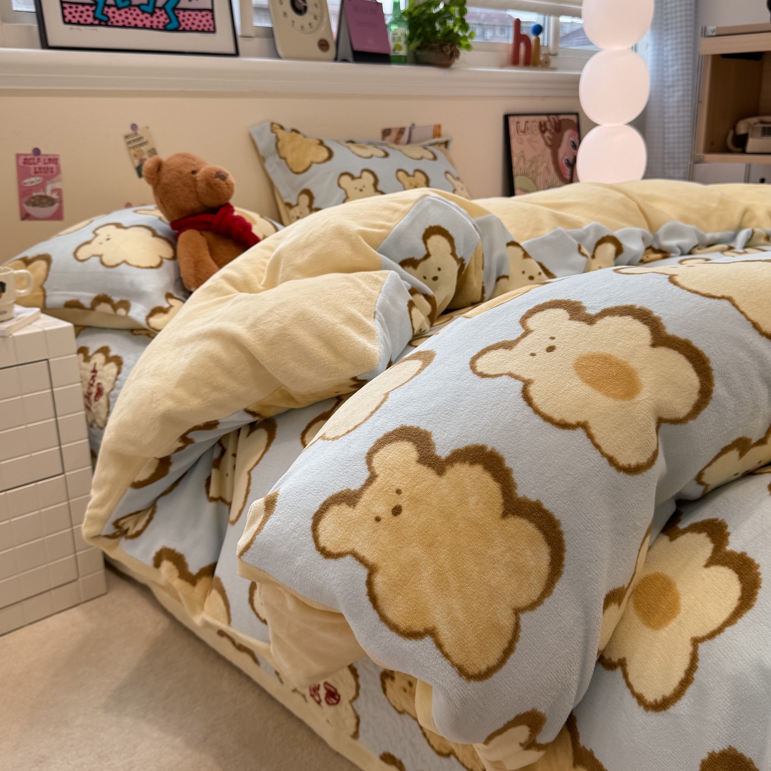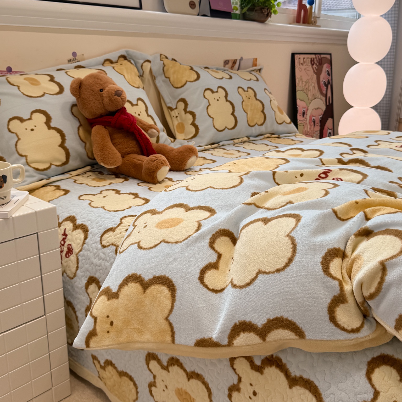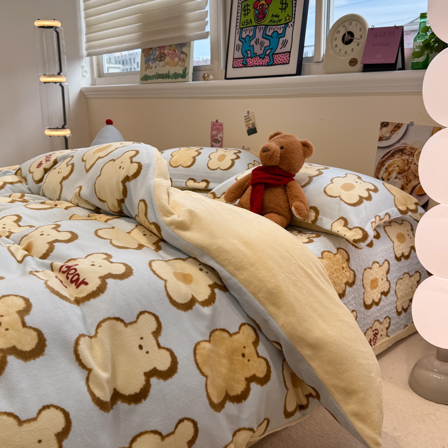 潘朵拉 2025新款ins风牛奶绒床盖四件套 饼干熊