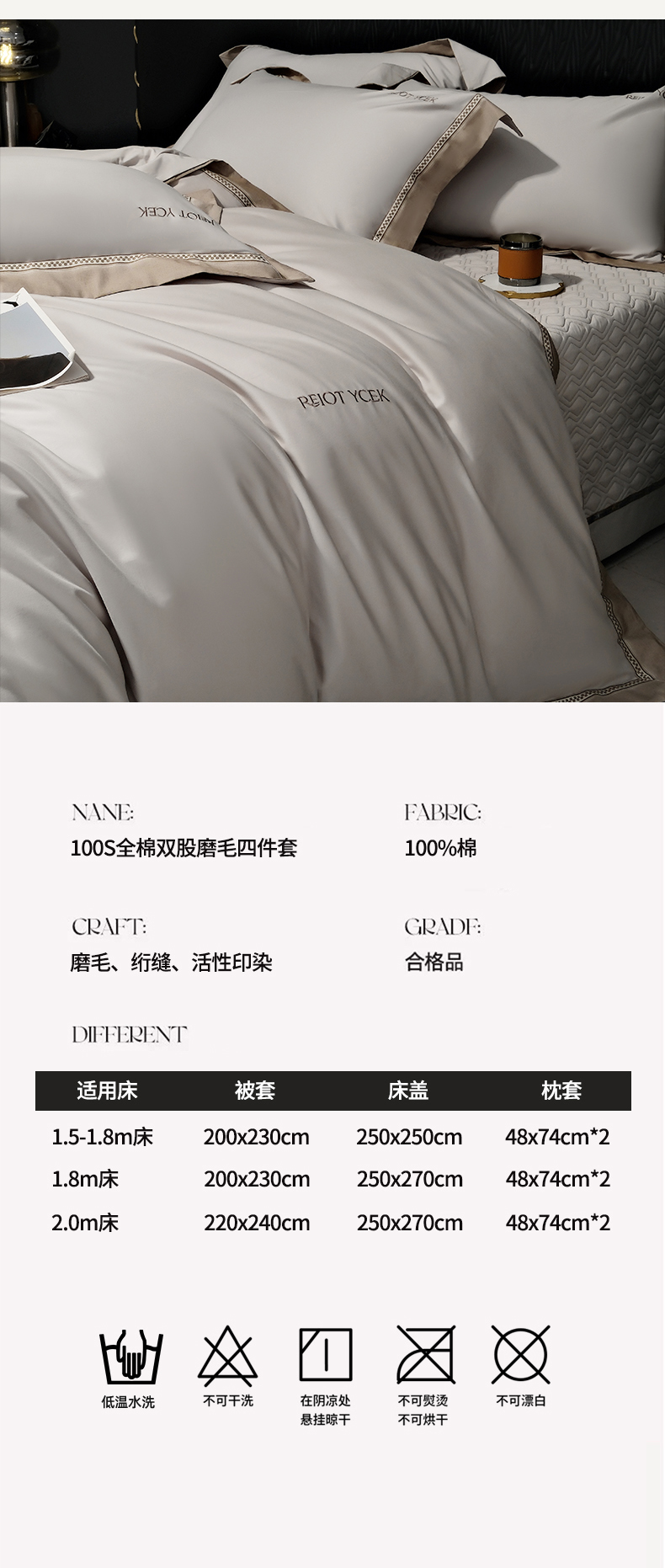 商品名称:OL家纺 2025新款100全棉双股磨毛四件套(控价1.5/1.8标准被套折券后368元!!!) 高尚灰